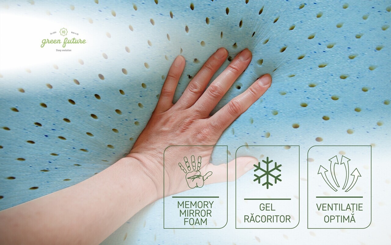 Memory Mirror Form® are in componenta particule de gel rece care impiedica supraincalzirea in timpul somnului.