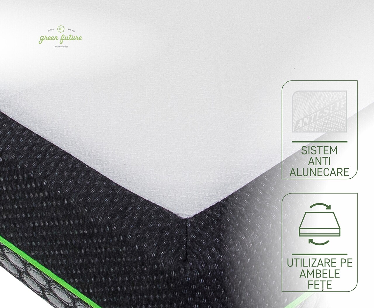 Stratul generos de confort din 5 cm spuma cu memorie imbunatateste efectul spumei Green Form HD. Ajuta la diminuarea punctelor de presiune avand ca efect relaxarea muschilor si o circulatie sangvina sanatoasa. Spuma poliuretanica de calitate superioara ofera stabilitate ridicata si zero deranj pentru partenerul de somn.