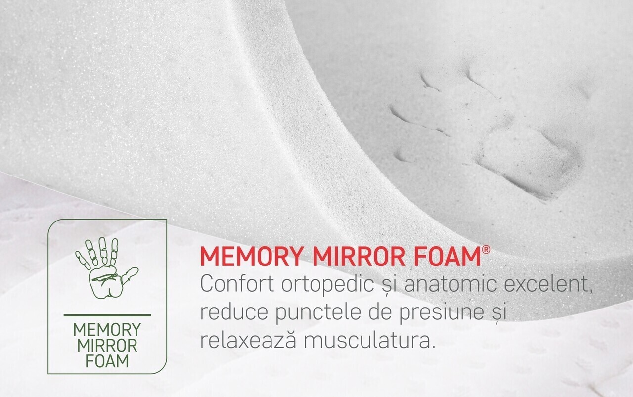 Stratul de spuma Memory Mirror Form® reactioneaza la caldura corpului si se muleaza pe acesta eliminand punctele de presiune in timpul somnului pentru a relaxa muschii si a asigura o circulatie a sangelui corespunzatoare.