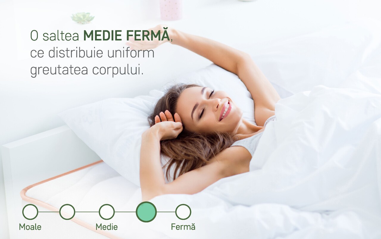 Este o saltea recomandata pentru toate pozitiile de dormit: pe spate, pe lateral si pe stomac.
