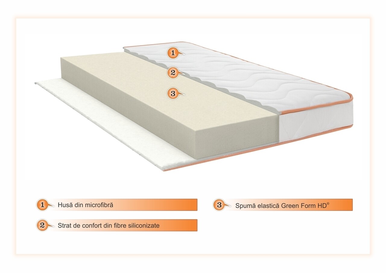 Saltea Ortopedica Orange Line 70x190 cm, H 18 cm - Hipoalergenica, anatomica
