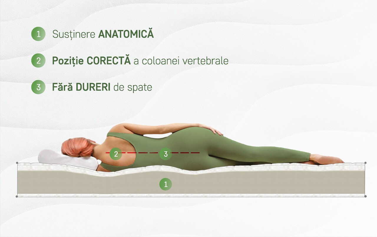 Este o saltea recomandata pentru toate pozitiile de dormit: pe spate, pe lateral si pe stomac.