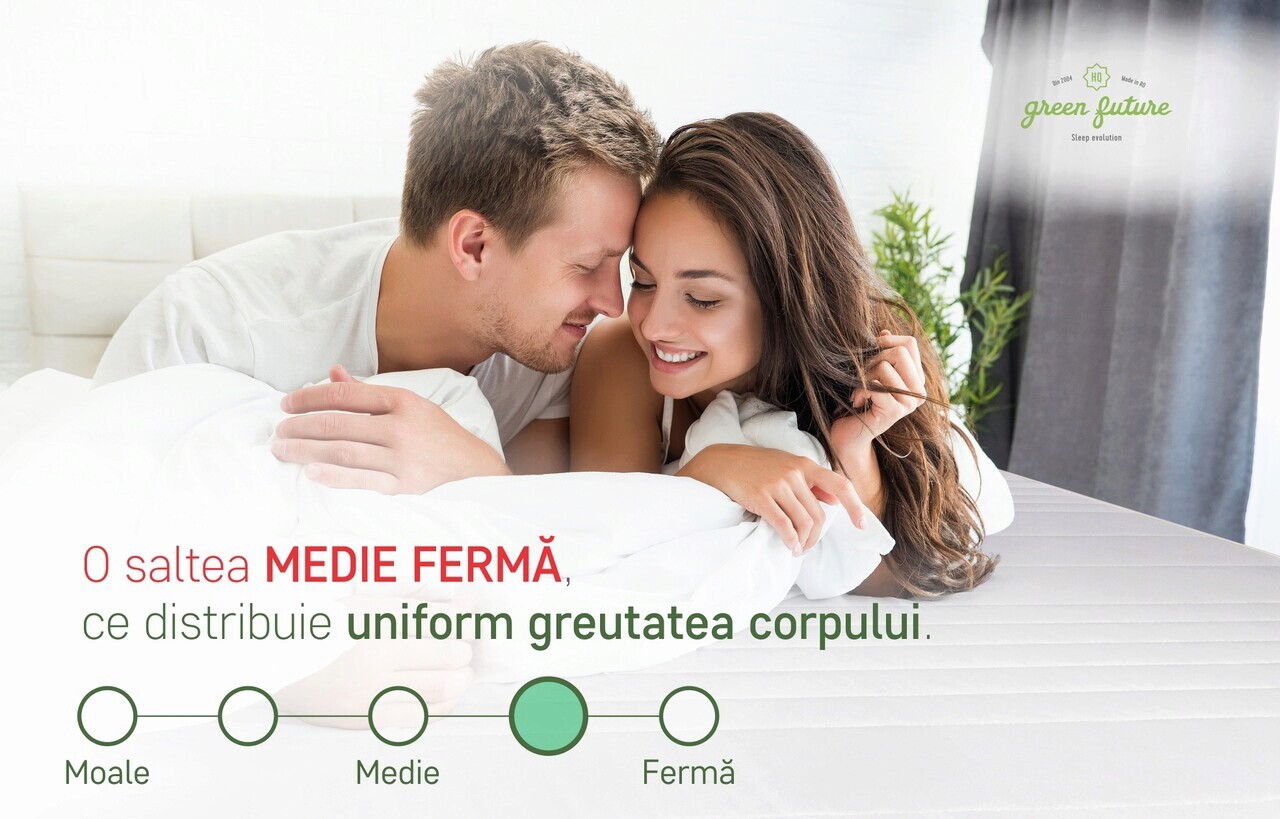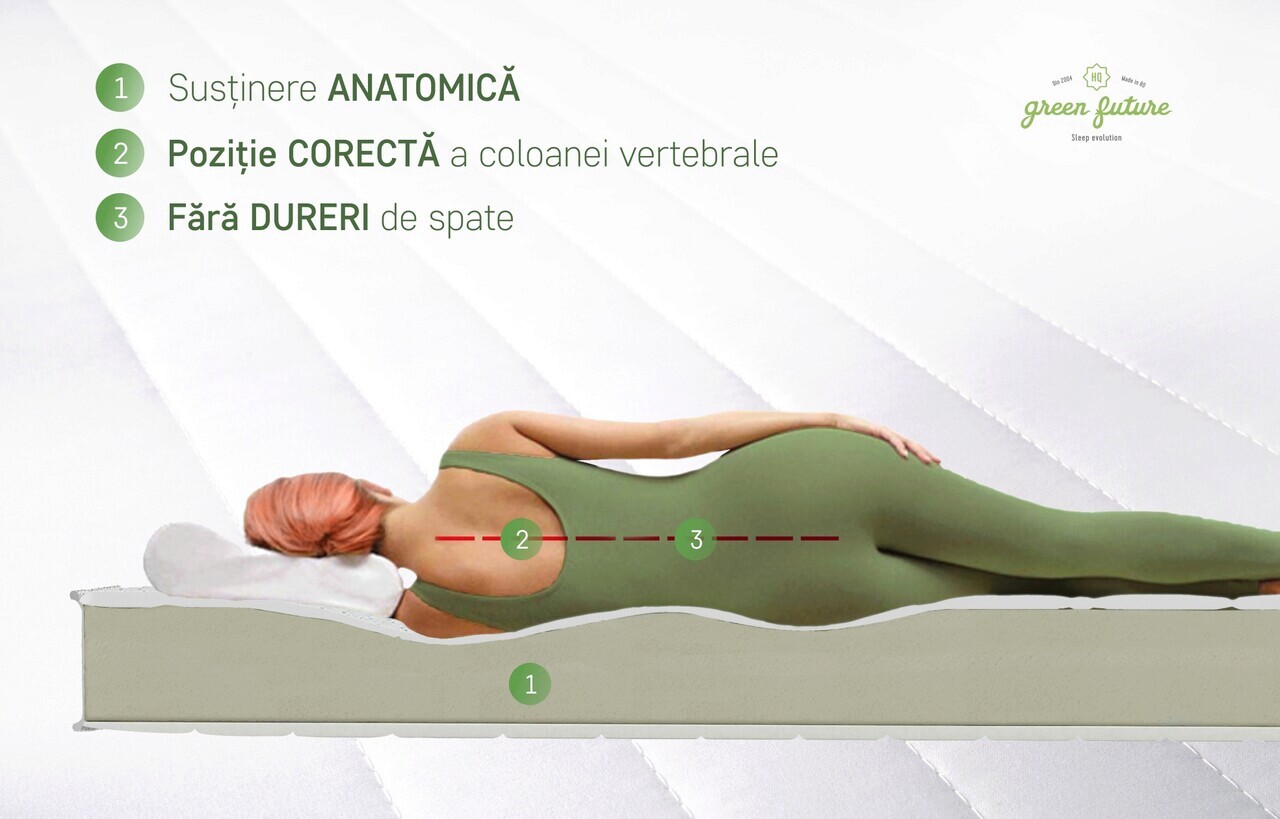 Salteaua este conceputa cu materiale de cea mai buna calitate. Baza saltelei din spuma elastica Green Form HD® cu celulatie deschisa asigura o sustinere anatomica a corpului si o pozitie corecta a coloanei fara dureri de spate in timpul somnului.