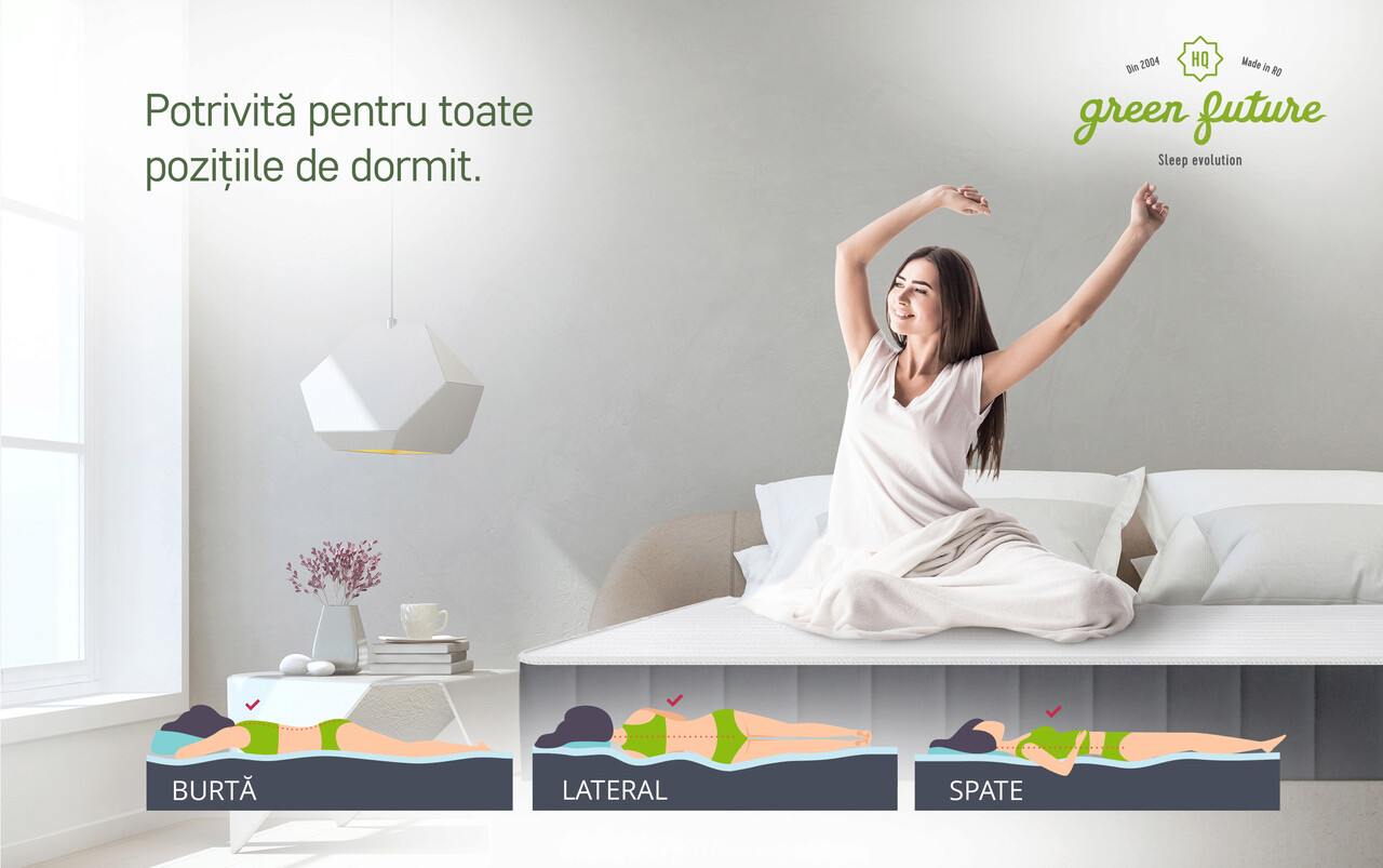 Somnul confortabil, odihnitor, este esential pentru organism, fiind un factor principal in echilibrul acestuia. Tocmai de aceea specialistii Green Future au creat salteaua ortopedica SERENA DUAL CONFORT.