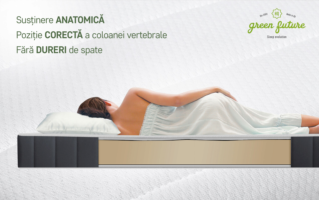 Somnul confortabil, odihnitor, este esential pentru organism, fiind un factor principal in echilibrul acestuia. Tocmai de aceea specialistii Green Future au creat salteaua ortopedica SERENA DUAL CONFORT.
