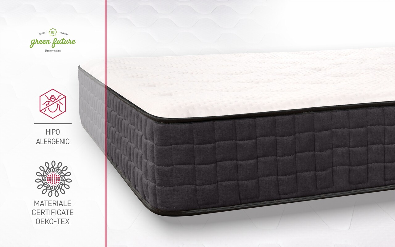 Dezvoltată în colaborare cu specialiști ortopezi, salteaua Green Future STAR Memory se remarcă prin utilizarea unor materiale de înaltă calitate, oferind suportul ideal pentru menținerea unei posturi ortopedice corecte pe durata nopții. Acest design avansat contribuie la ameliorarea presiunii și la alinierea optimă a coloanei vertebrale, asigurând un somn odihnitor și reconfortant.