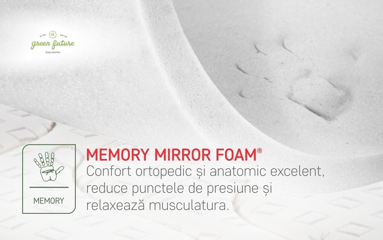Tehnologia avansata a spumei suport Green Form HD® impreuna cu cea a stratului de Memory Mirror Foam® impiedica propagarea miscarilor pe suprafata saltelei pentru a nu deranja partenerul in timpul somnului.