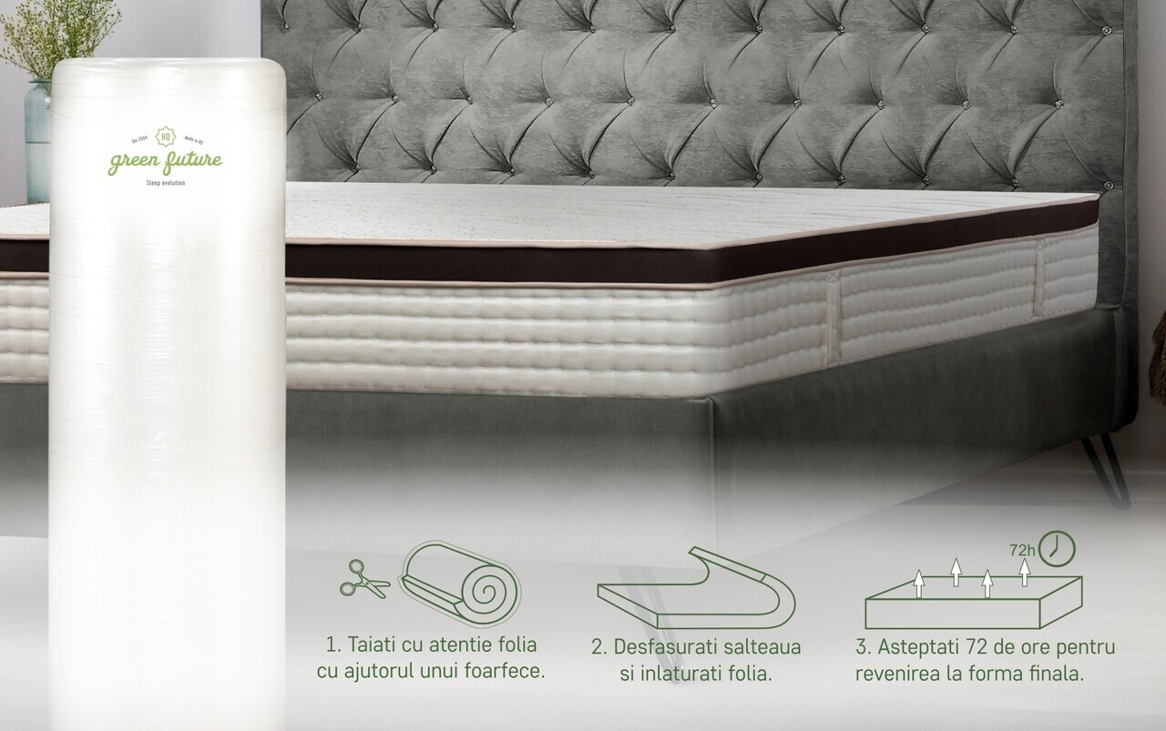 - desfaceti cu grija folia de protectie, fara a folosi cutitul sau alte obiecte taioase care ar putea deterioara tesatura saltelei.