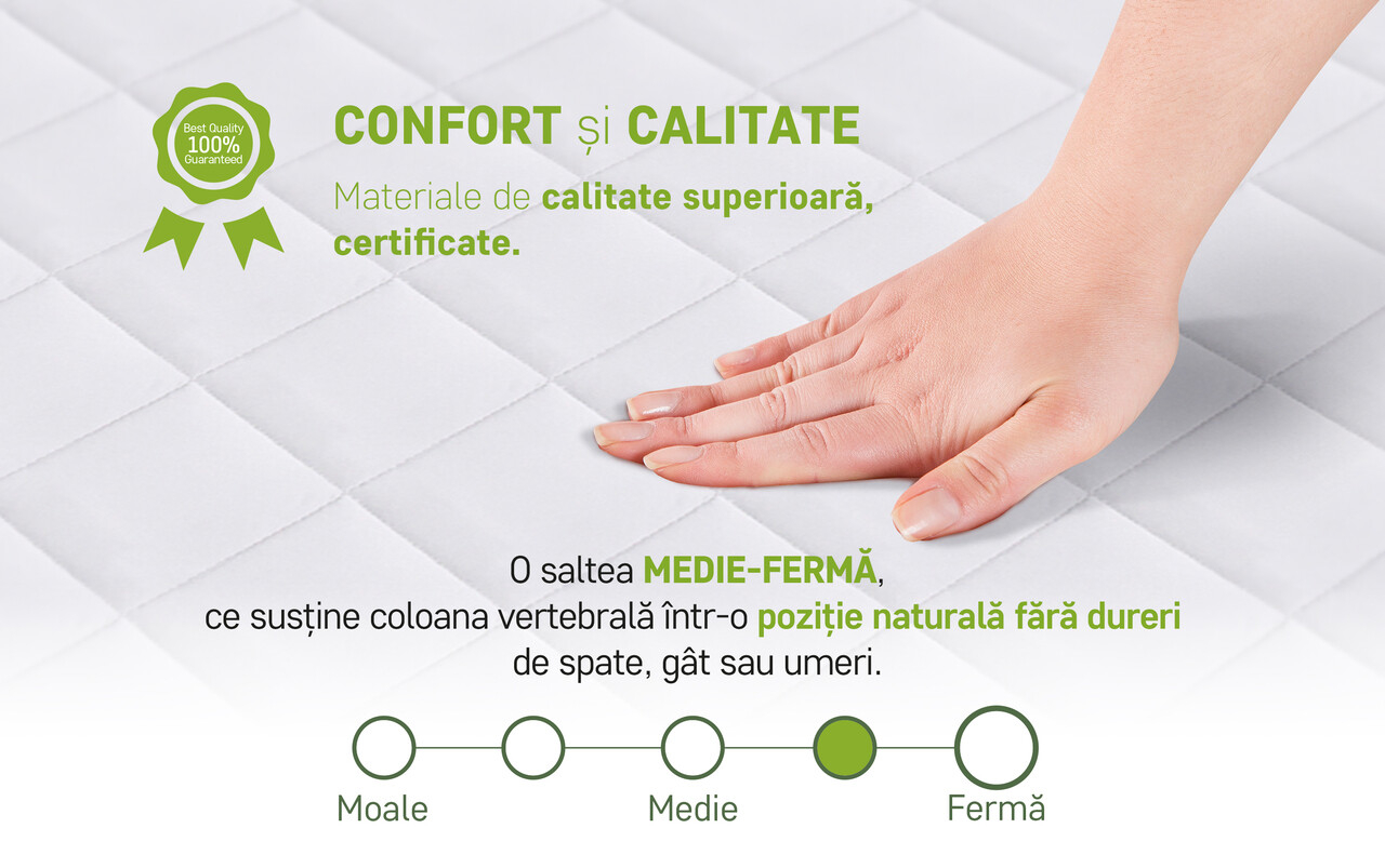 | Garantie | 2 ani - Certificat de garanție comercială pentru saltele |