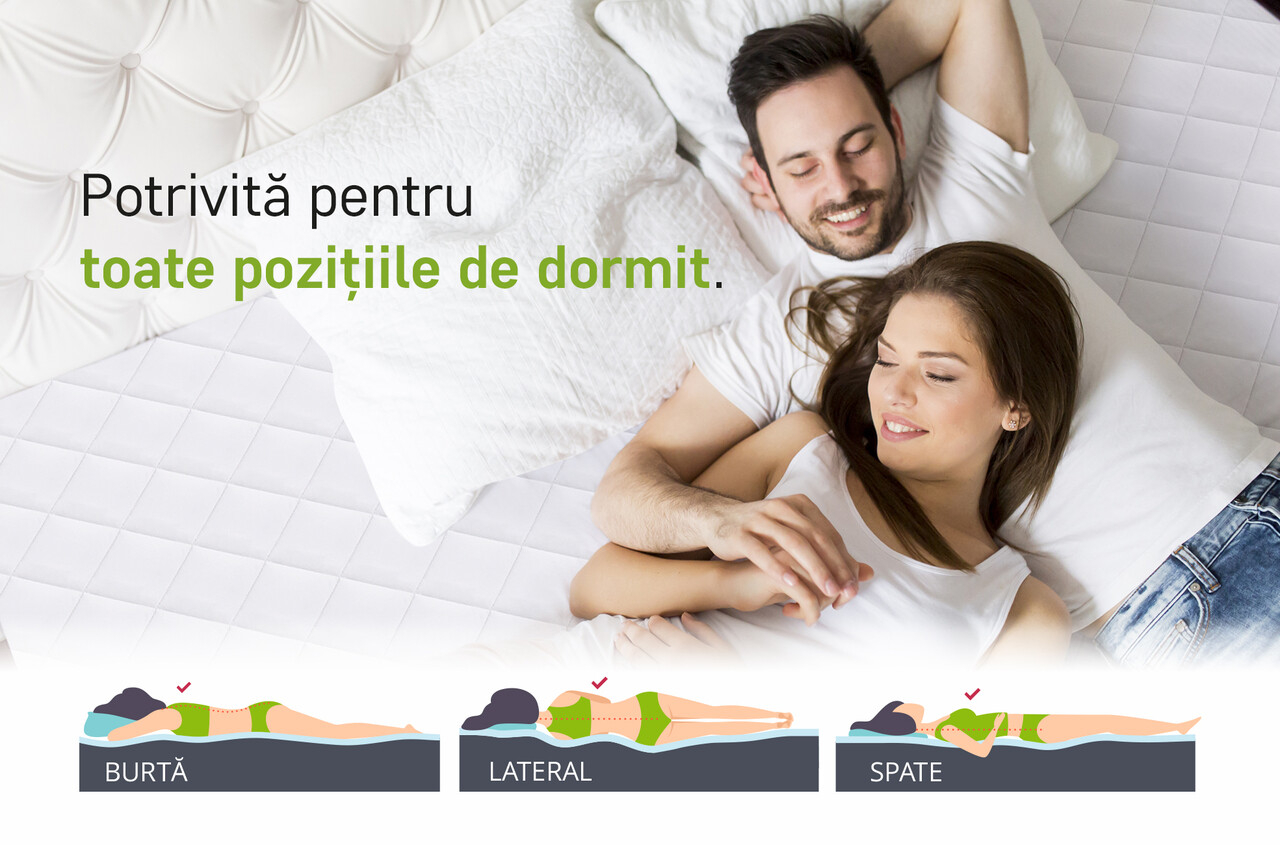 - Potrivita pentru toate pozitiile de somn: spate, lateral, stomac