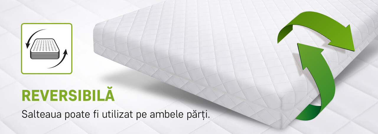 Salteaua este recomandata pentru toate pozitiile de dormit: pe spate, pe lateral sau pe stomac, oferind suport corect si sustinere echilibrata indiferent de preferintele tale.
