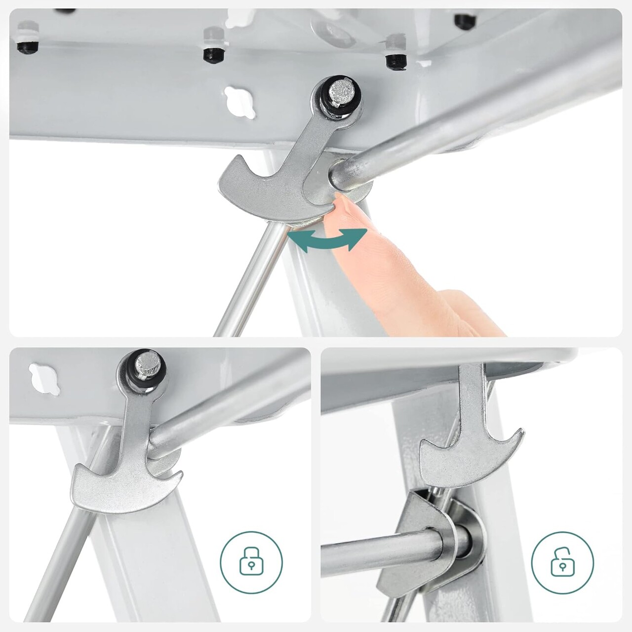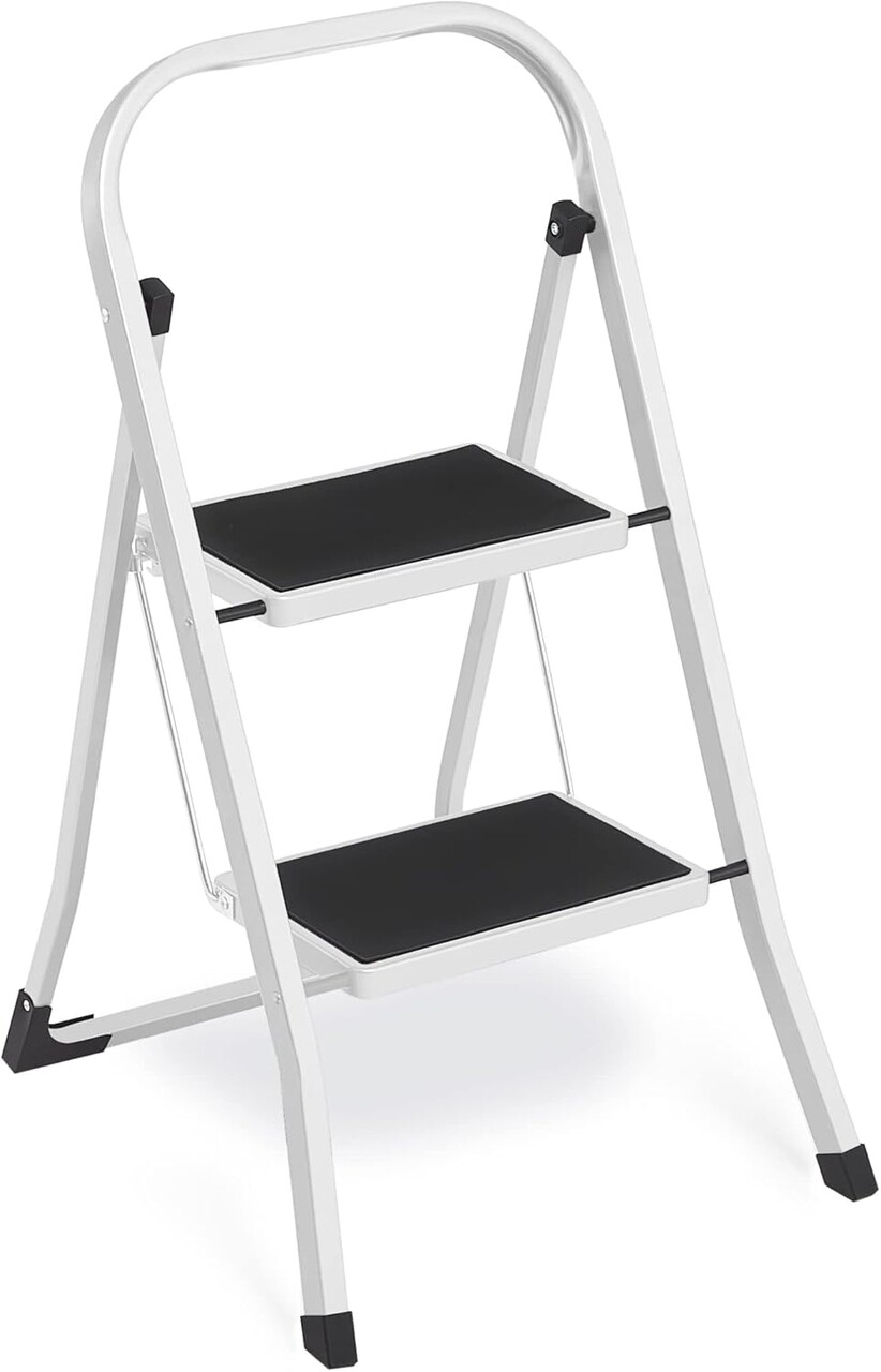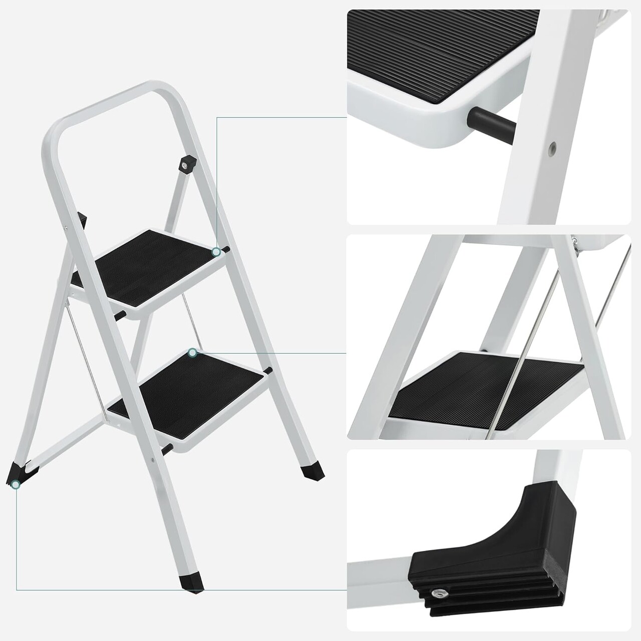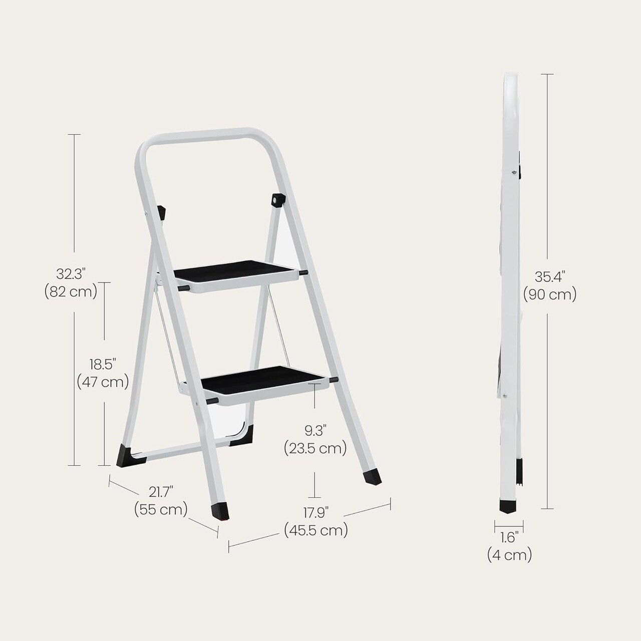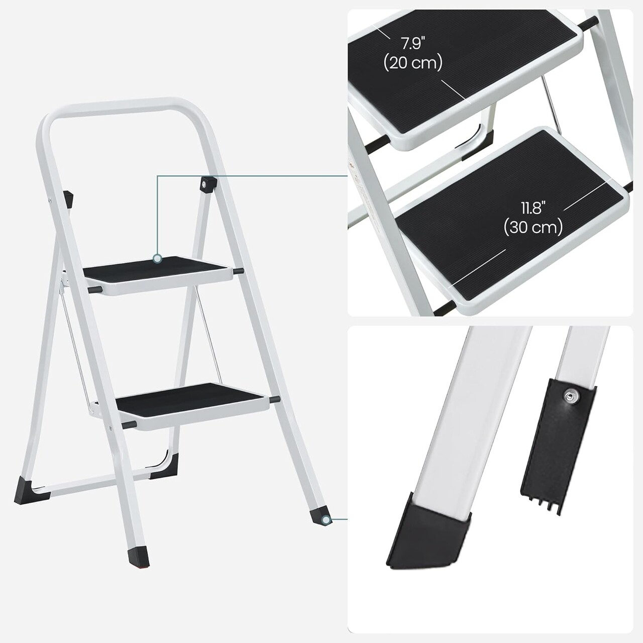 Scara cu 2 trepte, Songmics, plibila, 46.5x63.5x80 cm, max 150 kg, otel, alb