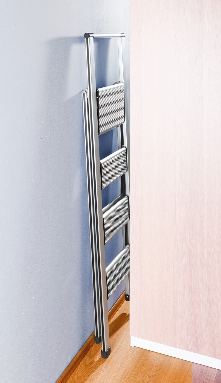 Scara pliabila, Wenko, 4-step, 44 x 153 x 5.5 cm, aluminiu/plastic, gri