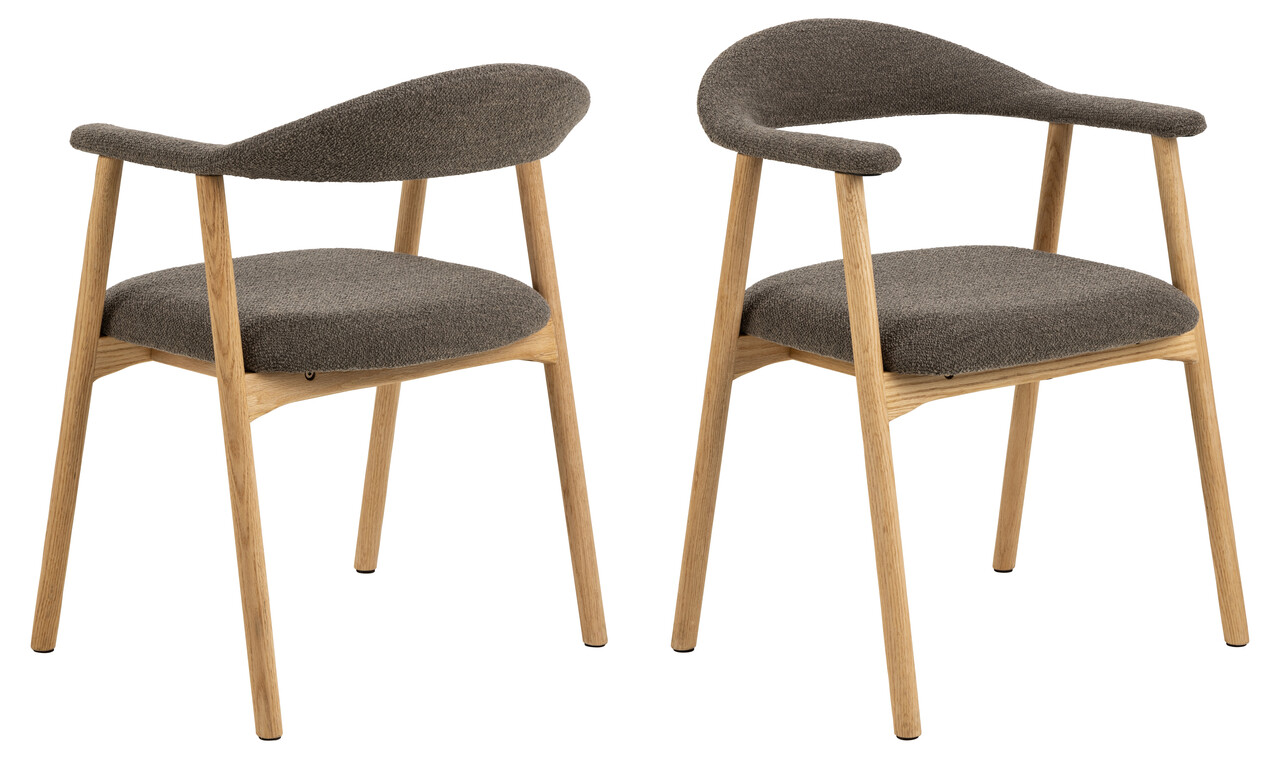 Scaun Addi, Actona, 56x54x75.5 cm, tesatura Boucle/lemn de stejar, grej