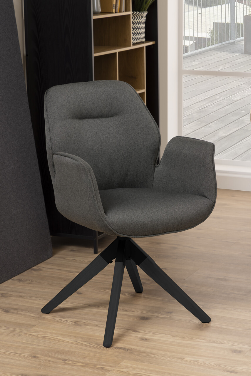 Scaun Aura, Actona, 60.5x58.5x91 cm, rotativ, poliester/lemn de cauciuc, gri inchis/negru