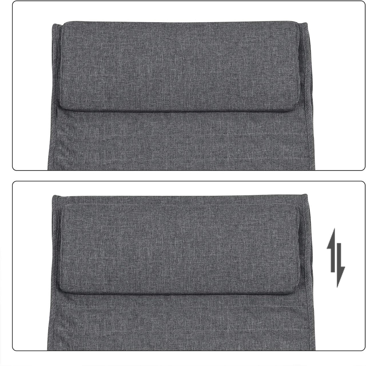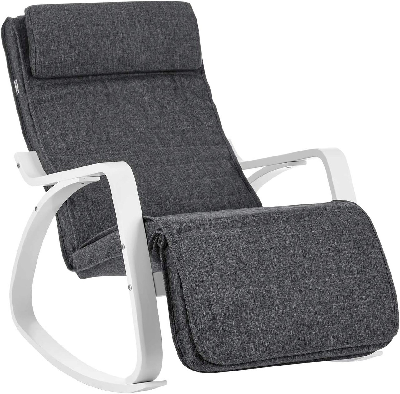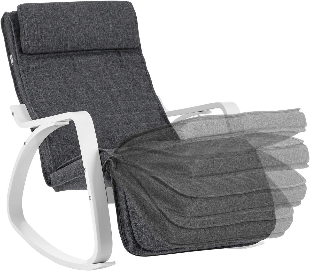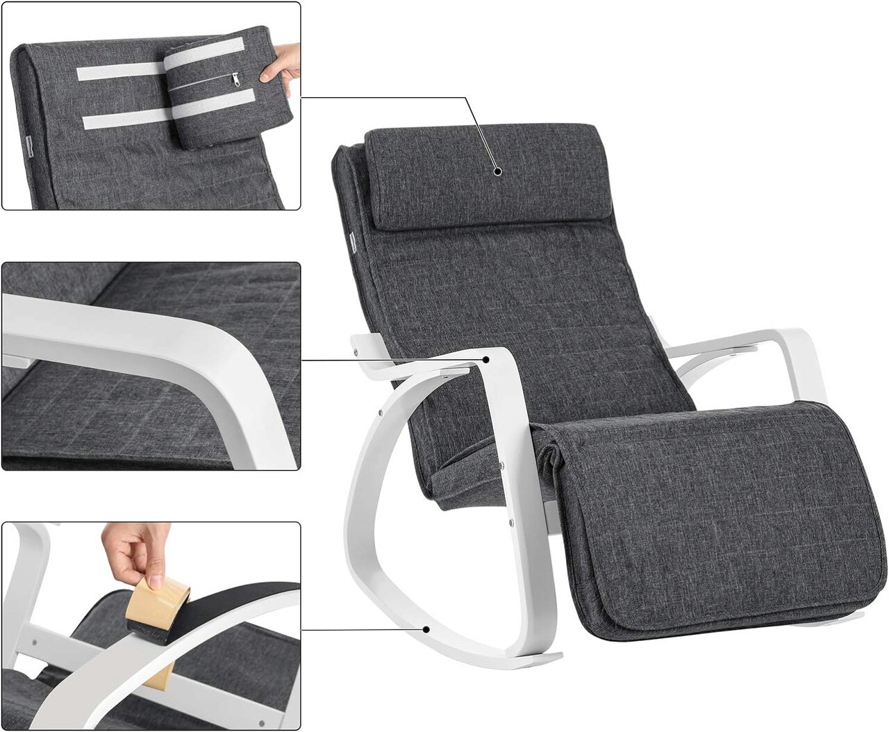 Scaun balansoar reglabil in 5 pozitii, Songmics, 67x121.5x84 cm, max 150 kg, lemn de mesteacan/textil cu aspect de in, gri inchis/alb
