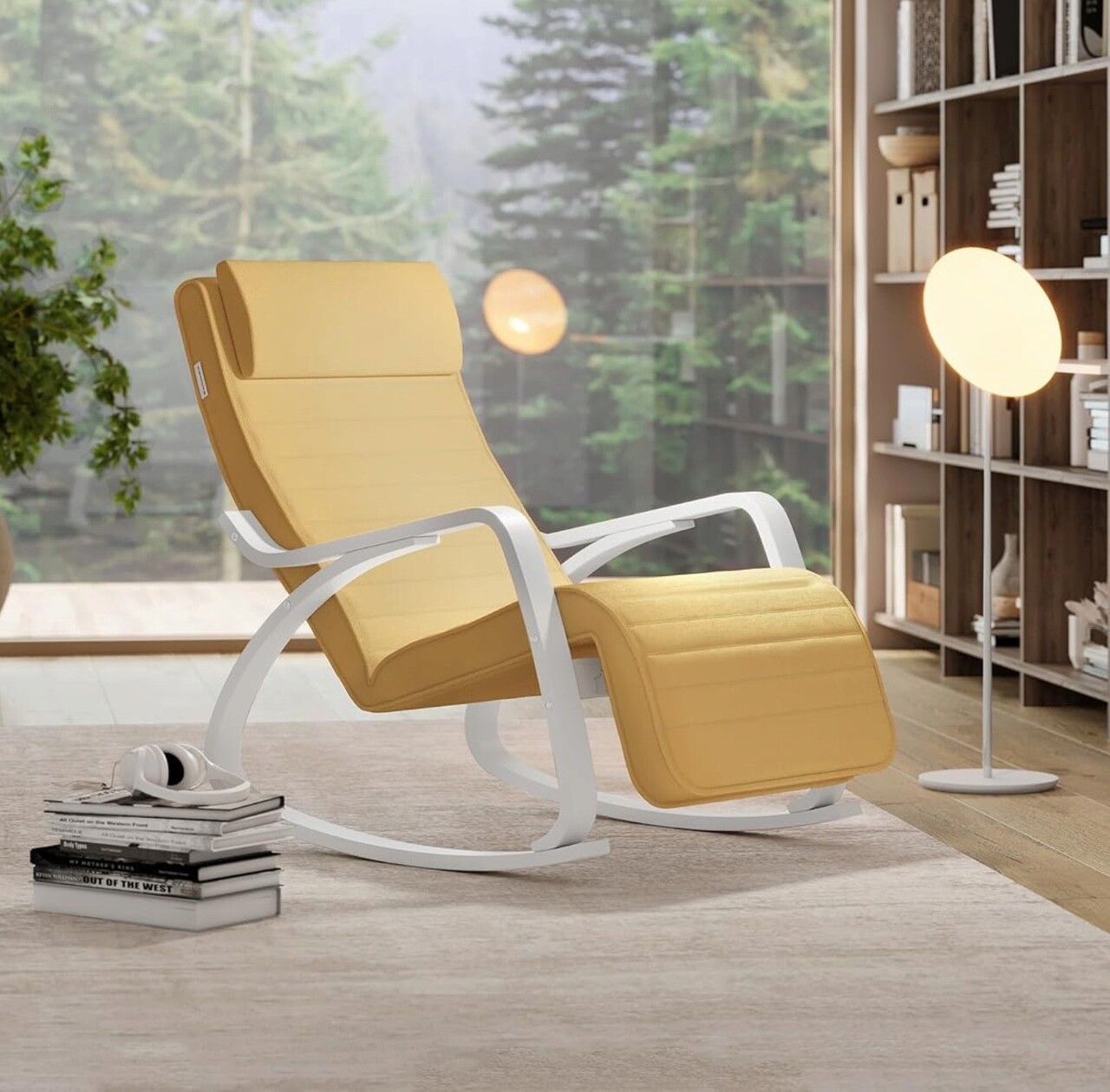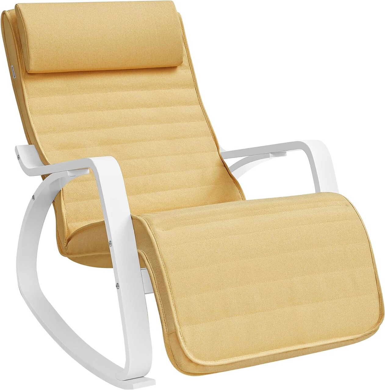 Scaun balansoar reglabil in 5 pozitii, Songmics, 67x121.5x84 cm, max 150 kg, lemn de mesteacan/policoton, galben pastel/alb
