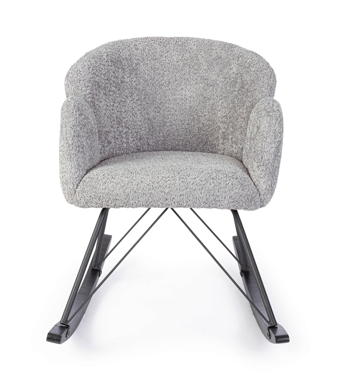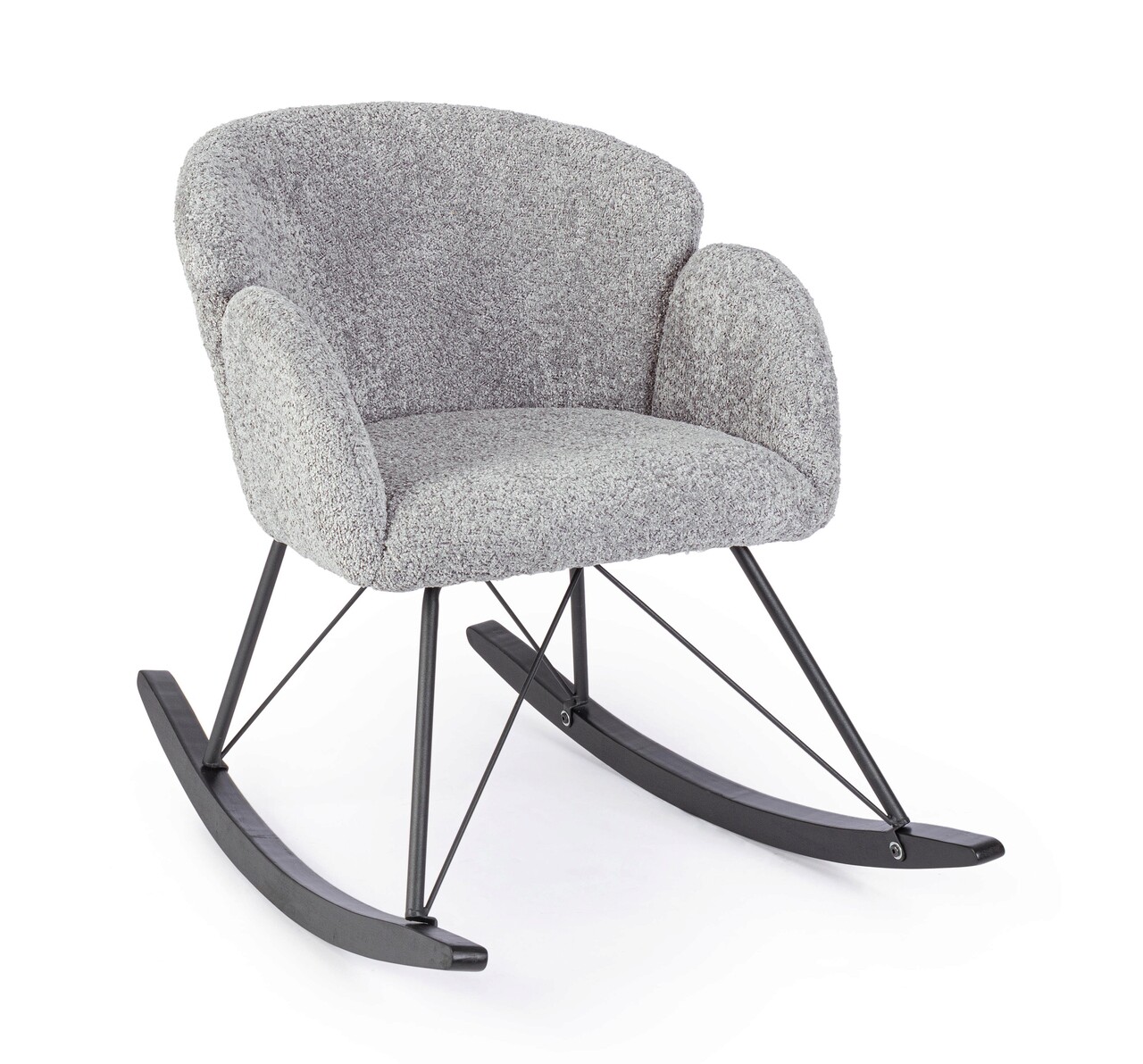 Scaun balansoar Sibilla, Bizzotto, 86 x 62 x 48 cm, otel/arbore de cauciuc/poliester Boucle, gri deschis