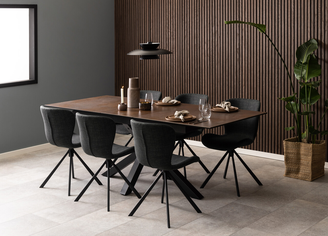 Scaun Batilda -A1, Actona, 46.5x53x81 cm, rotativ, tesatura structurata/otel, gri inchis