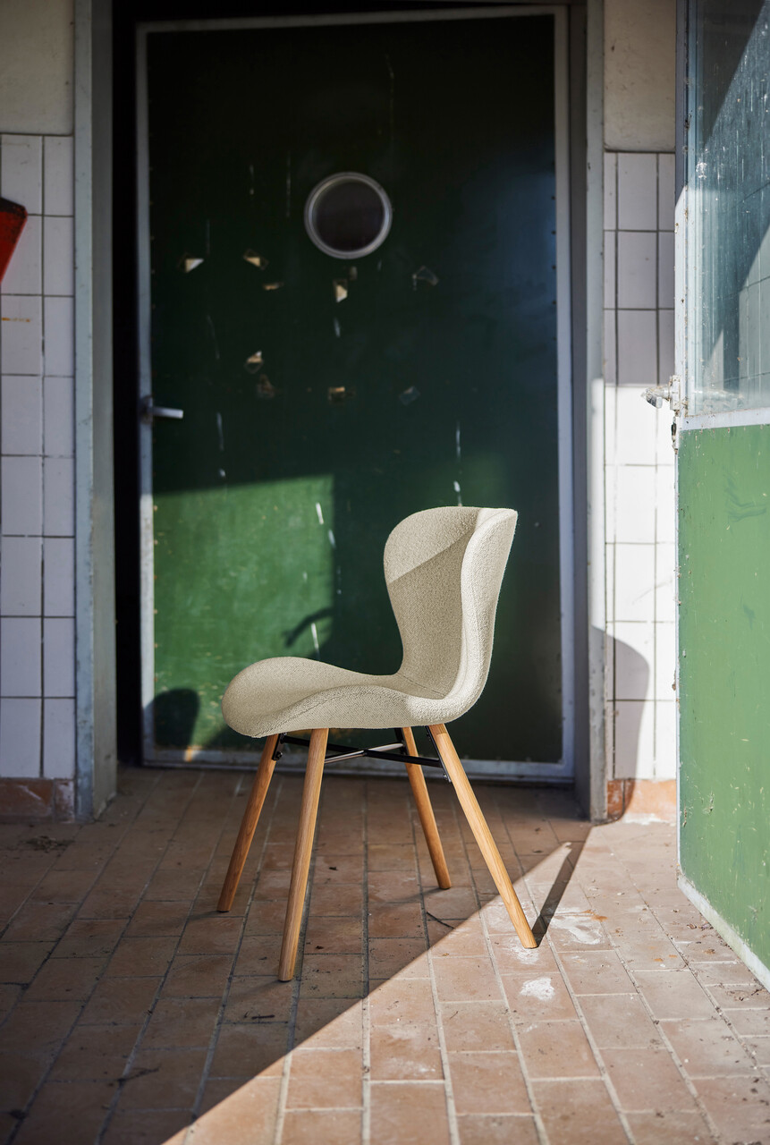 Scaun Batilda -A1 Zip, Actona, 47x53x82.5 cm, tesatura Boucle/lemn de stejar, crem