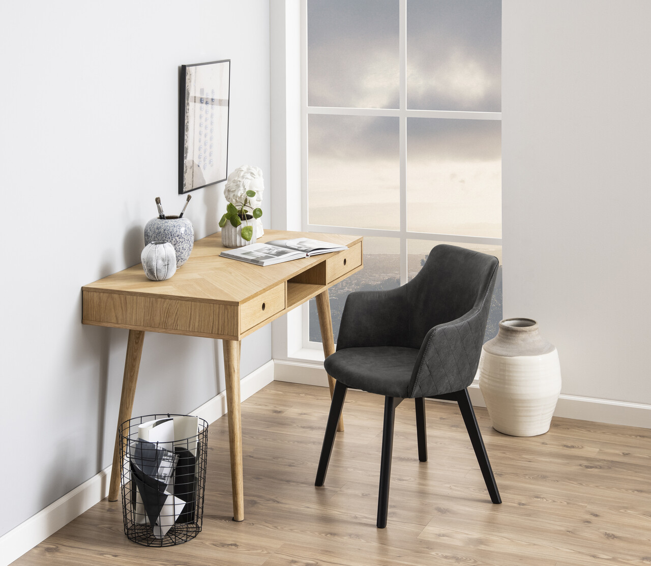 Scaun Bella, Actona, 62x59x80 cm, poliester/lemn de stejar, antracit