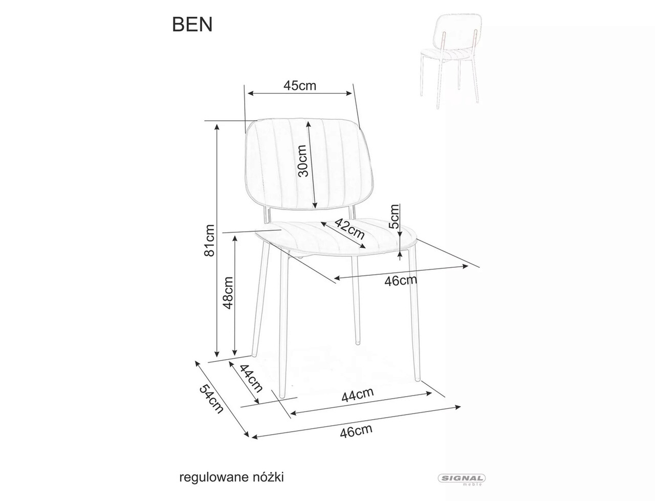 Scaun Ben, Signal, 46x42x81 cm, piele ecologica/otel, gri/negru