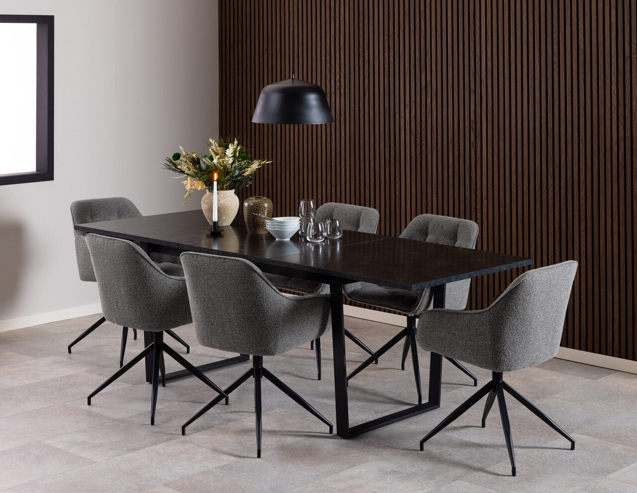 Scaun Brooke, Actona, 57x54.5x82 cm, rotativ, tesatura Boucle/otel, antracit