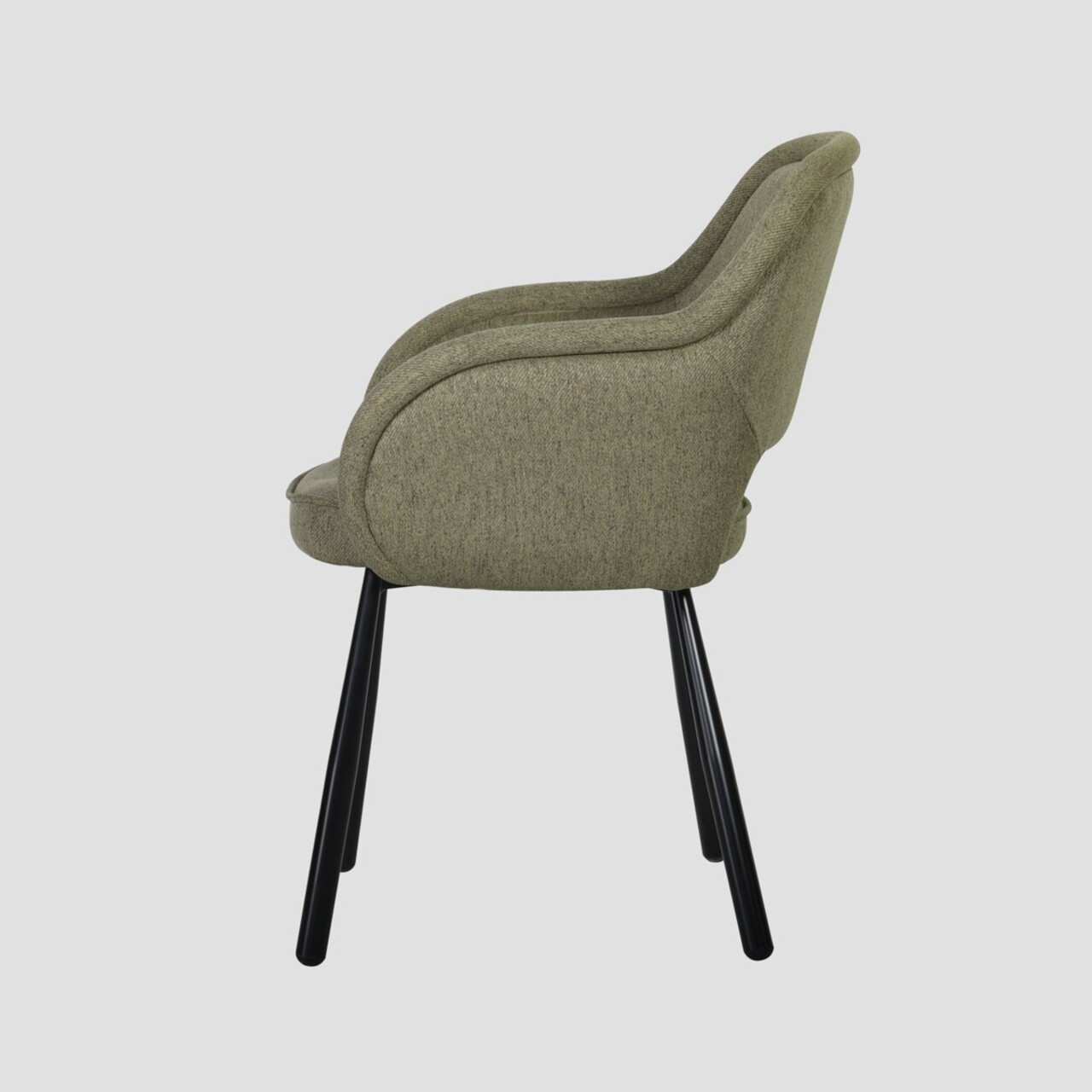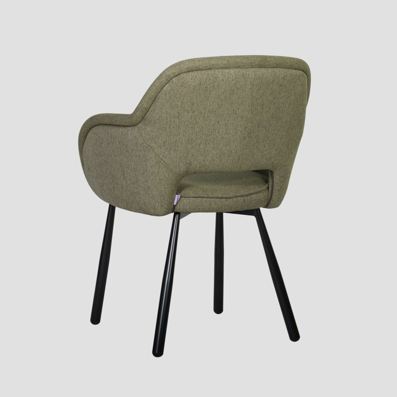 Sezutul si spatarul sunt tapitate cu poliester rezistent, cu umplutura moale din spuma poliuretanica. Picioarele sunt fabricate din metal vopsit, ceea ce asigura durabilitate si stabilitate.