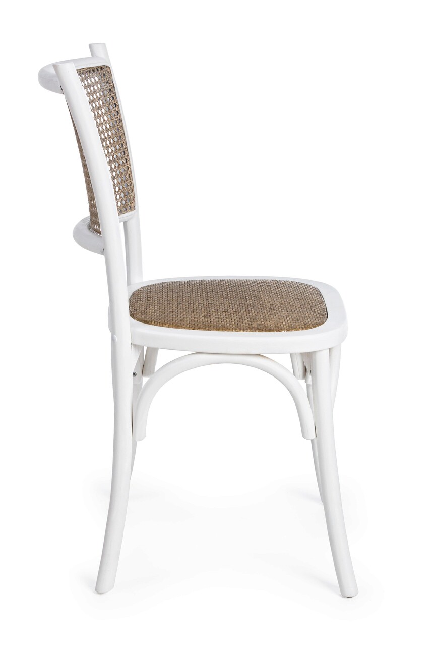 Scaun Carrel, Bizzotto, 45 x 53 x 89 cm, lemn de ulm/ratan, alb