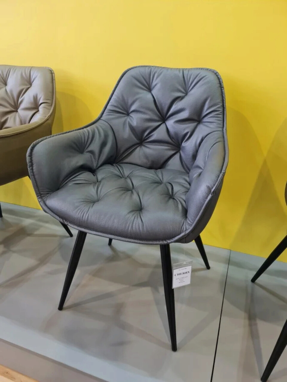 Scaun Cherry, Signal, 57x43x87 cm, piele ecologica/otel, gri/negru