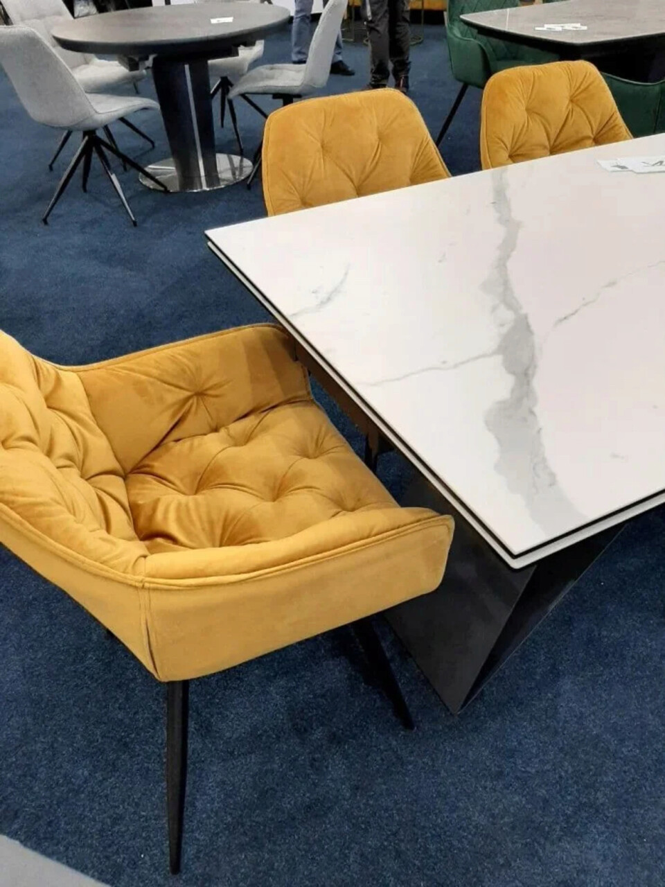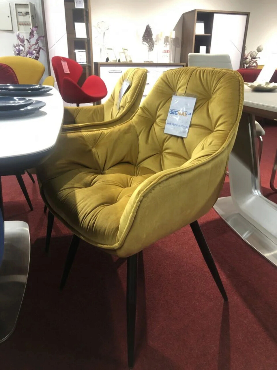 Scaun Cherry Velvet, Signal, 45x44x83 cm, catifea/otel, mustar/negru