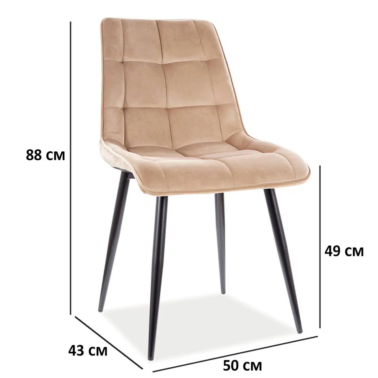 Scaun Chic Velvet, Signal, 50x43x88 cm, catifea/otel, bej/negru