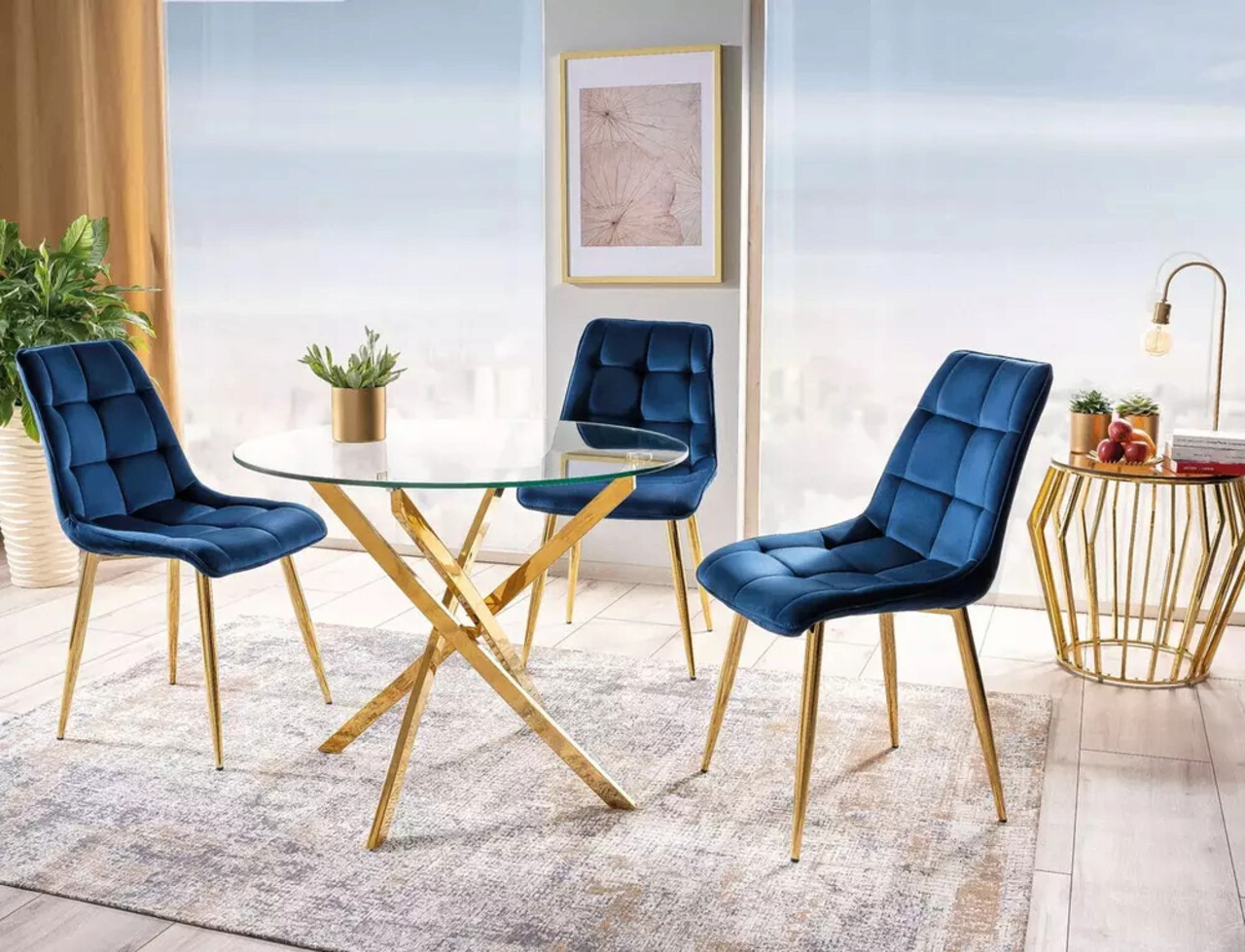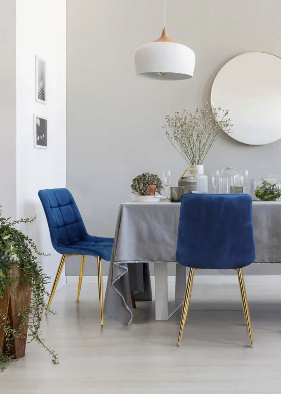 Scaun Chic Velvet, Signal, 51x44x89 cm, catifea/otel, albastru/auriu