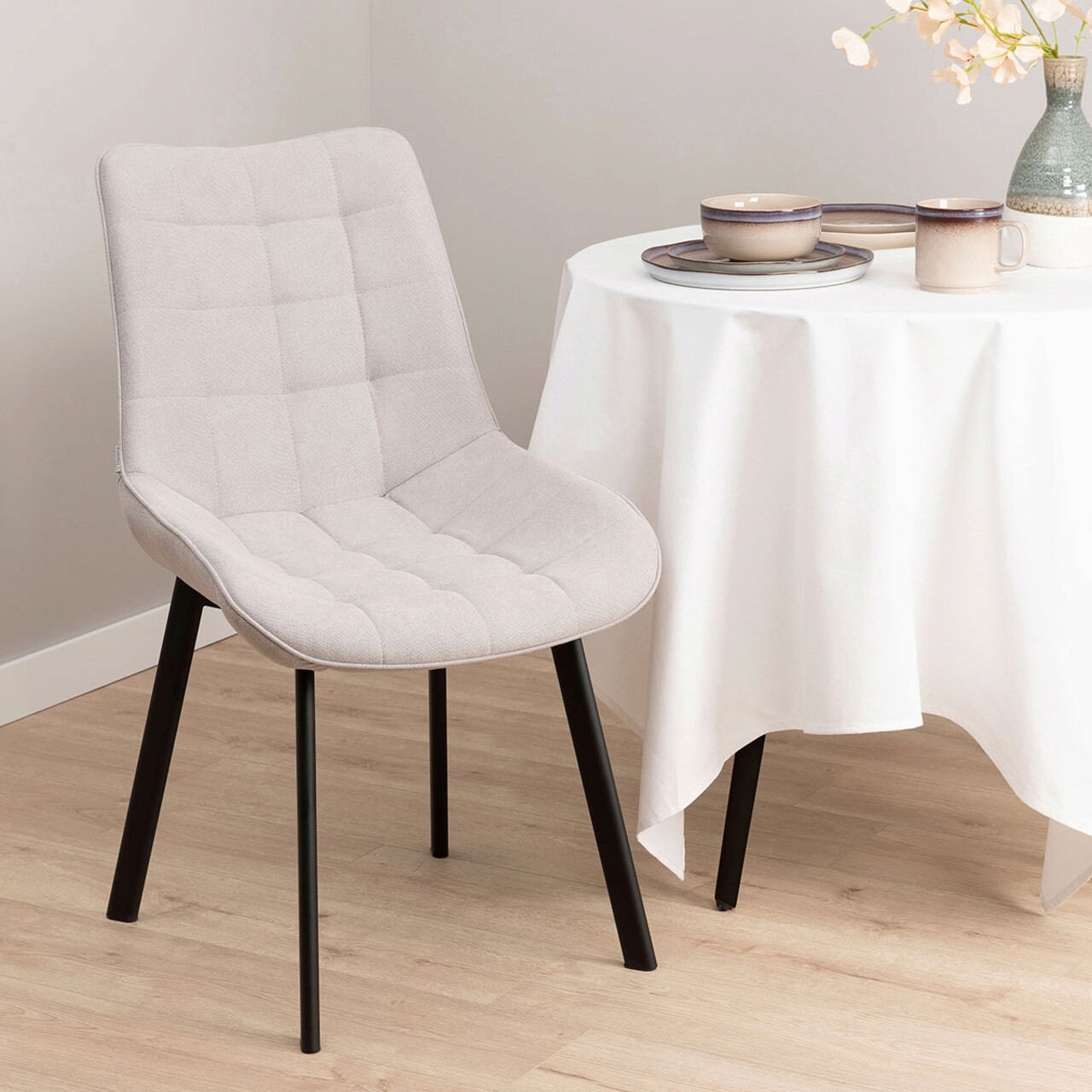 Scaun Colin, Homla, 61x53x88 cm, metal/MDF/textil, gri deschis
