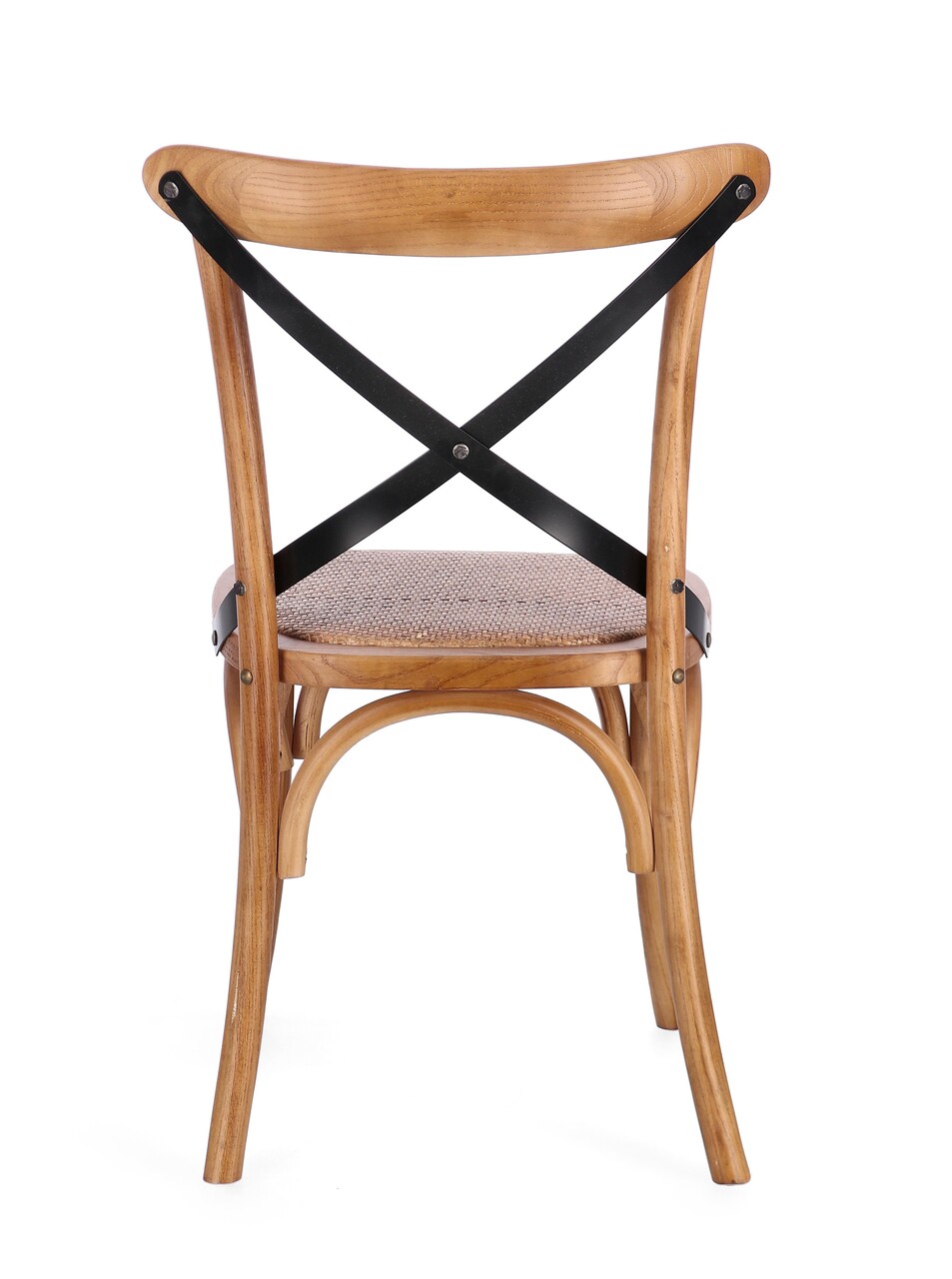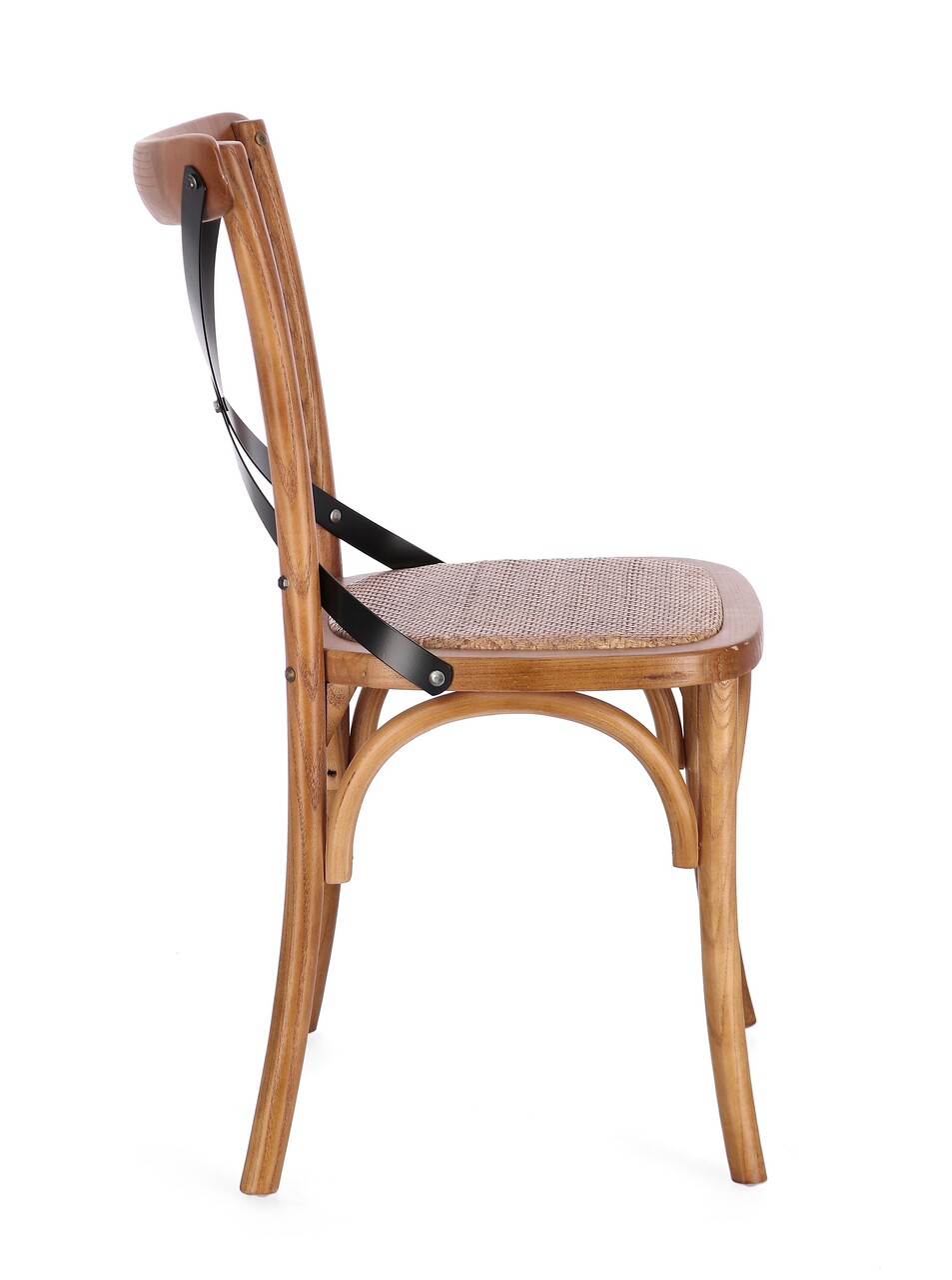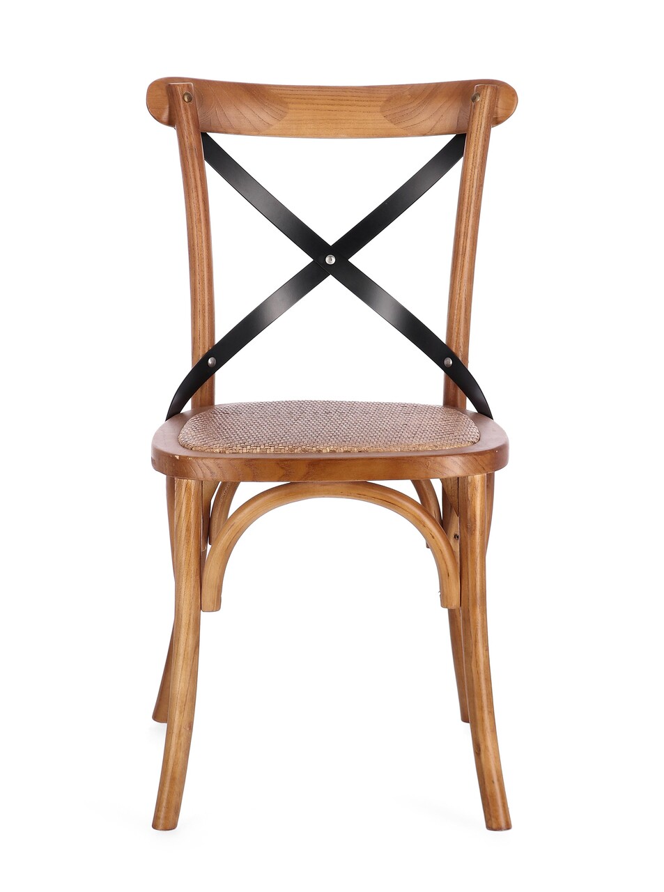 Scaun Cross, Bizzotto, 50.5x52x87 cm, lemn de ulm/otel/ratan, natural inchis
