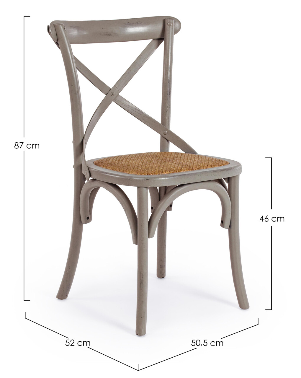 Scaun Cross, Bizzotto, 50.5x52x87 cm, lemn de ulm/ratan, gri inchis