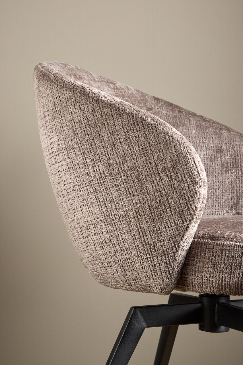 Scaun Darlene, Actona, 58.5x60x80 cm, rotativ, tesatura Chenille/otel, maro pudrat