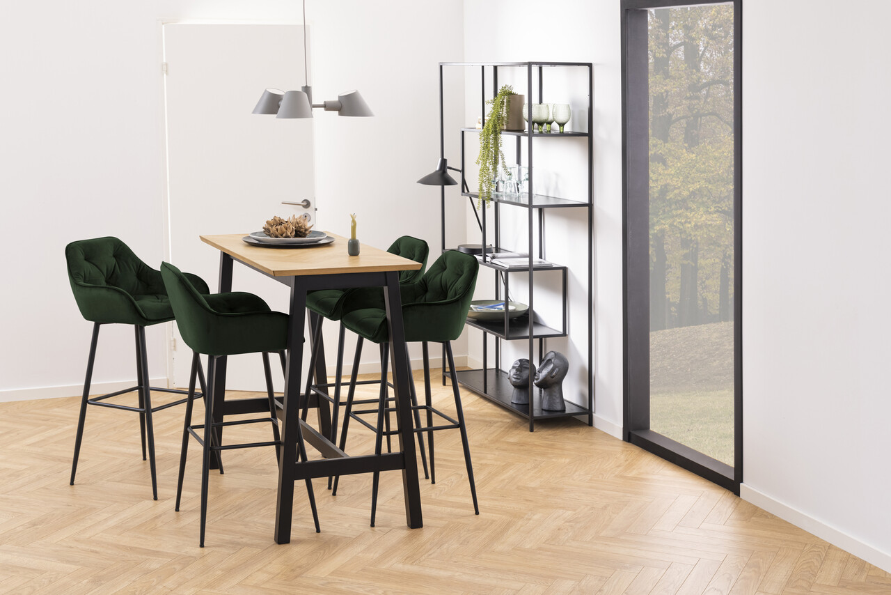 Scaun de bar Brooke, Actona, 52x53x104 cm, catifea/otel, verde forest