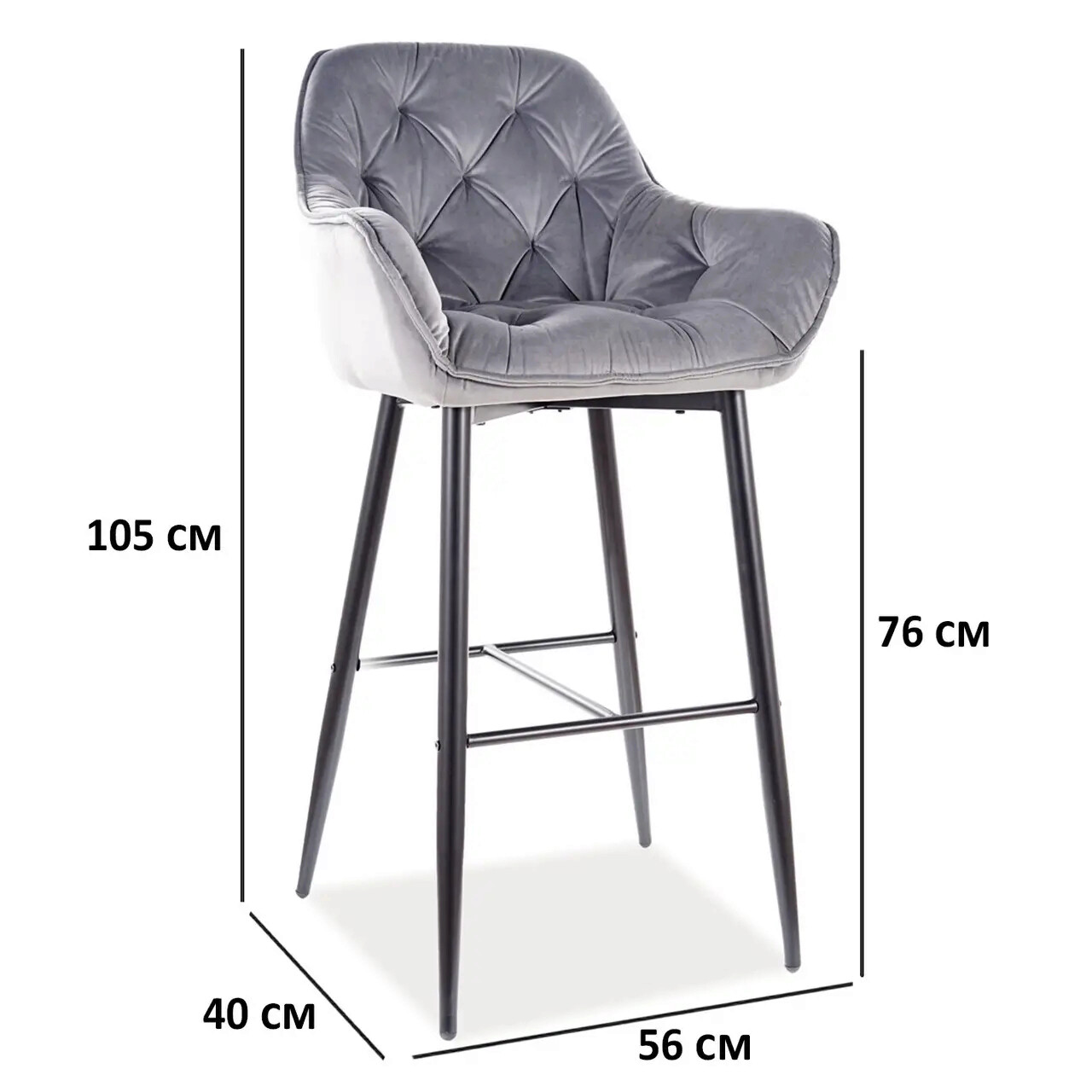 Scaun de bar Cherry H-1 Velvet, Signal, 56x40x105 cm, catifea/otel, gri/negru