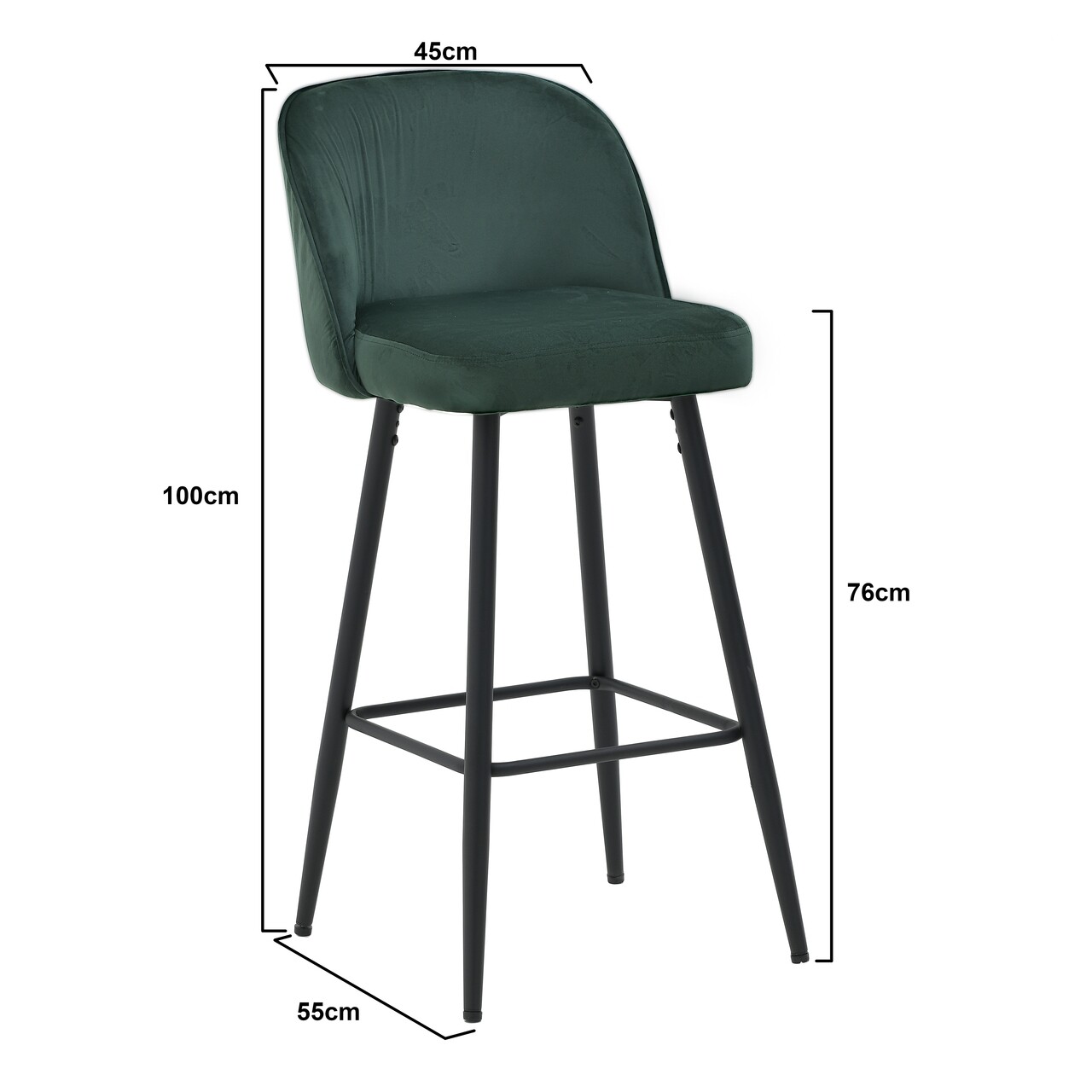 Scaun de bar Conrad, InArt, 45x55x100 cm, fier/catifea, verde