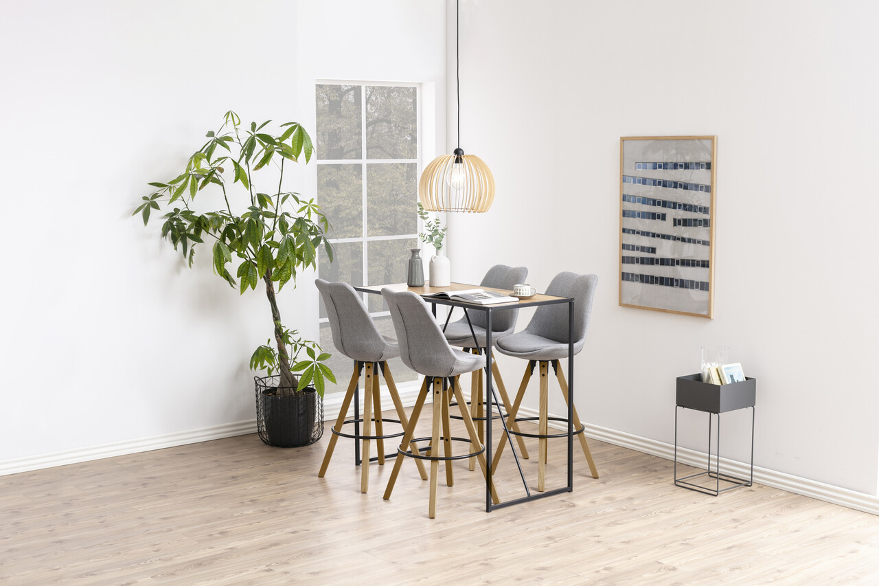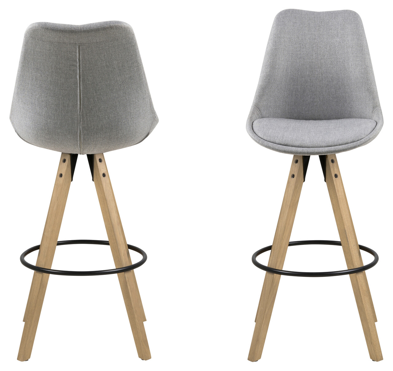Scaun de bar Dima, Actona, 48.5x55x111.5 cm, poliester/otel, lemn de cauciuc, gri deschis