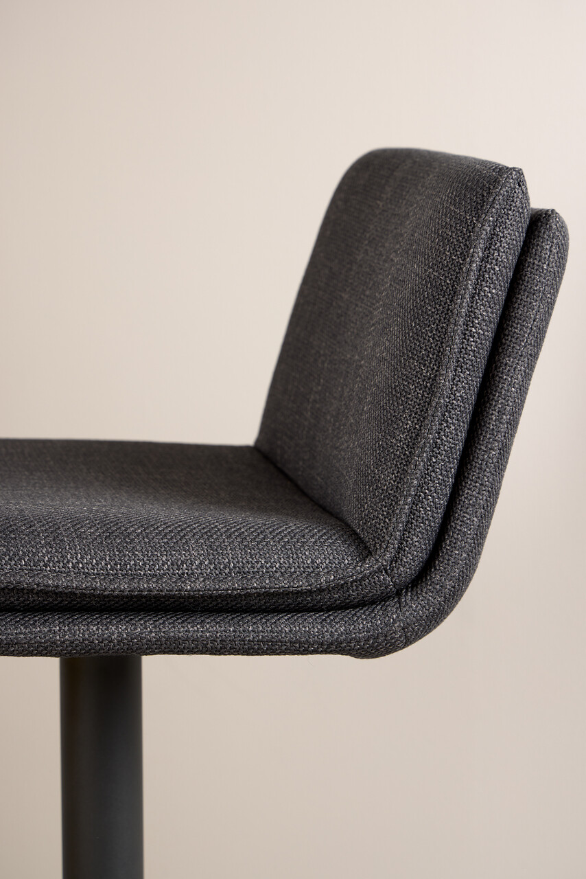 Scaun de bar Flynn, Actona, 44x53x107 cm, rotativ, tesatura structurata/otel, gri inchis