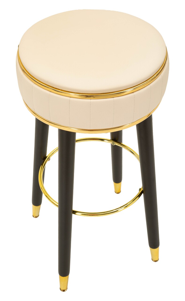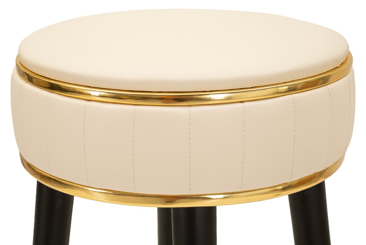 Scaun de bar, Mauro Ferretti, London, 37x74 cm, lemn de pin/piele ecologica, crem/negru/auriu