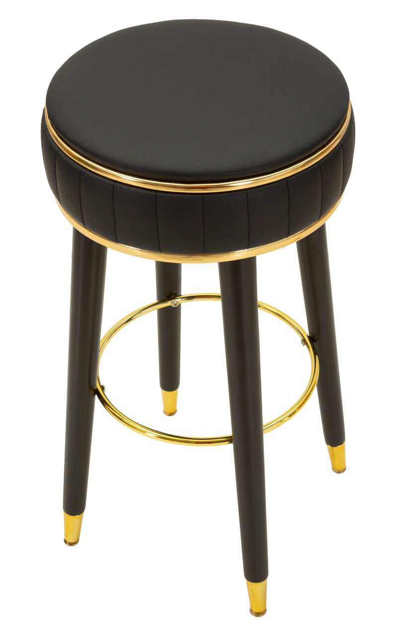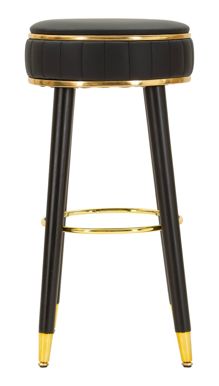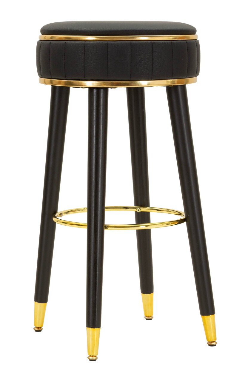 Scaun de bar, Mauro Ferretti, London, 38x74 cm, lemn de pin/piele ecologica, negru/auriu