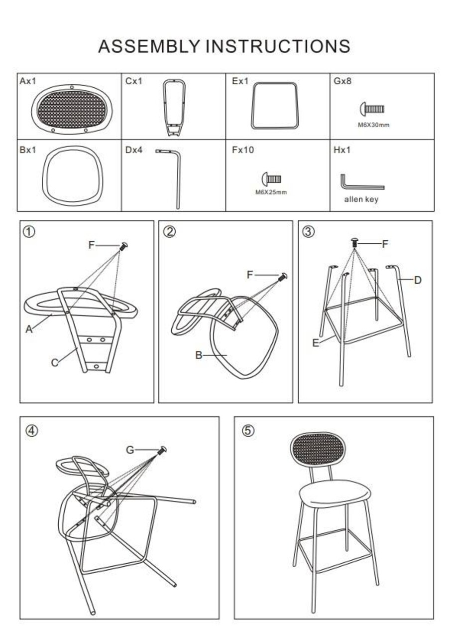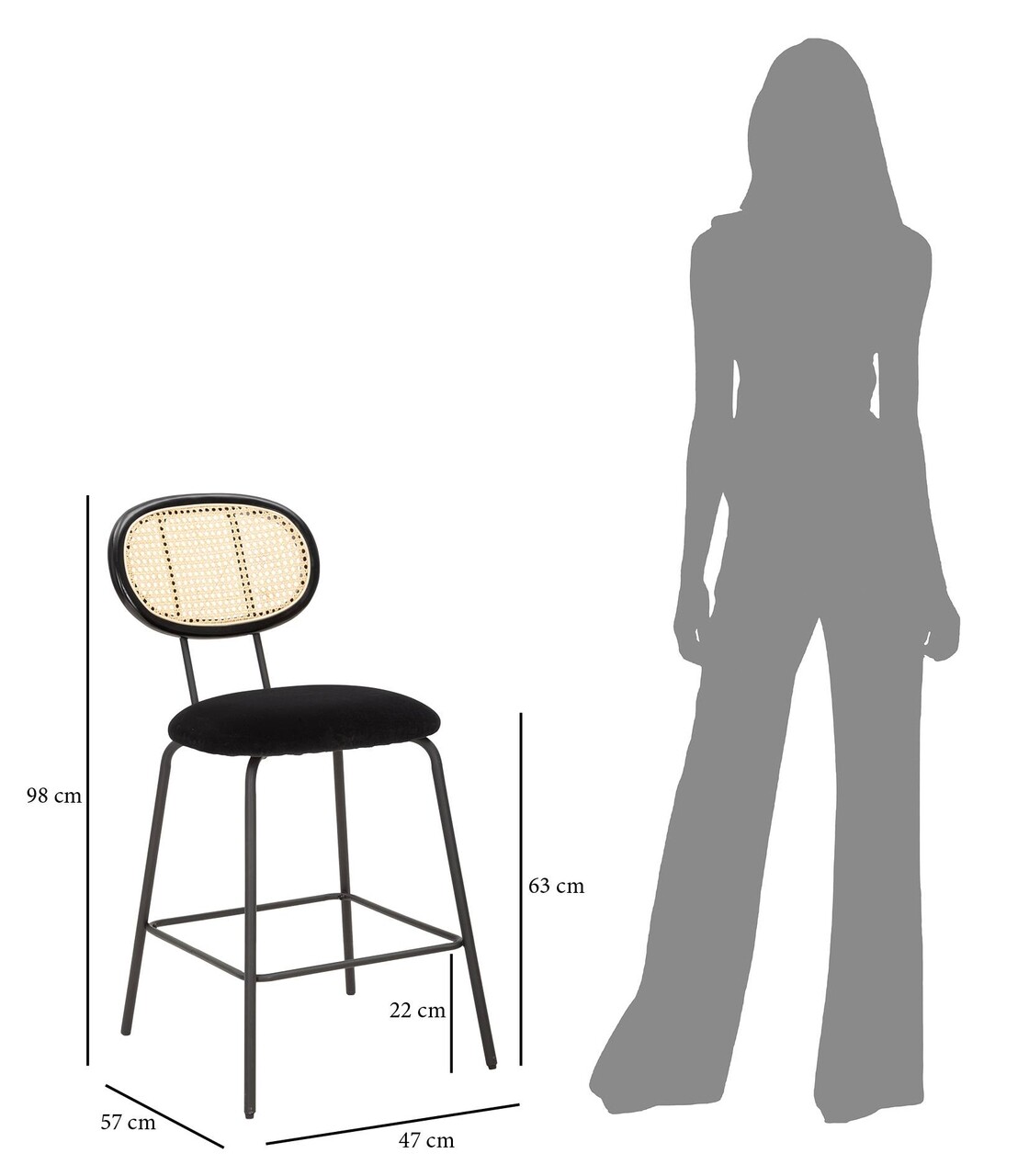 Scaun de bar Osaka, Mauro Ferretti, 47x57x98 cm, fier/ratan, negru