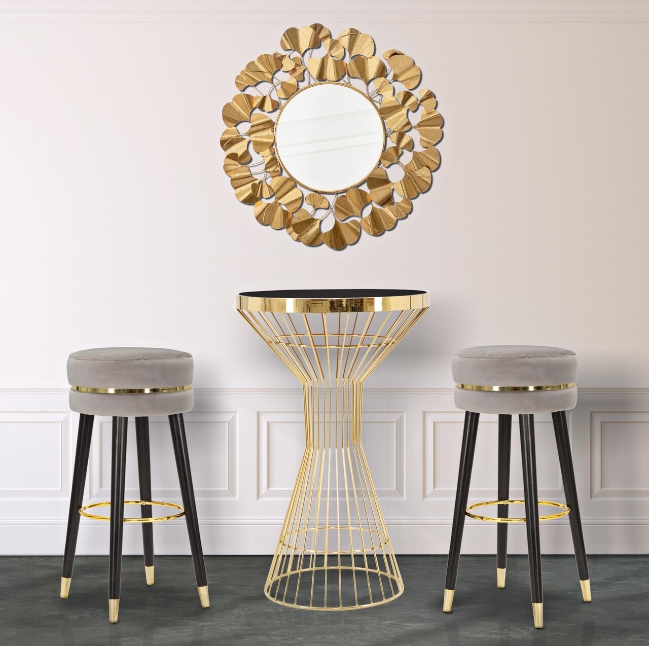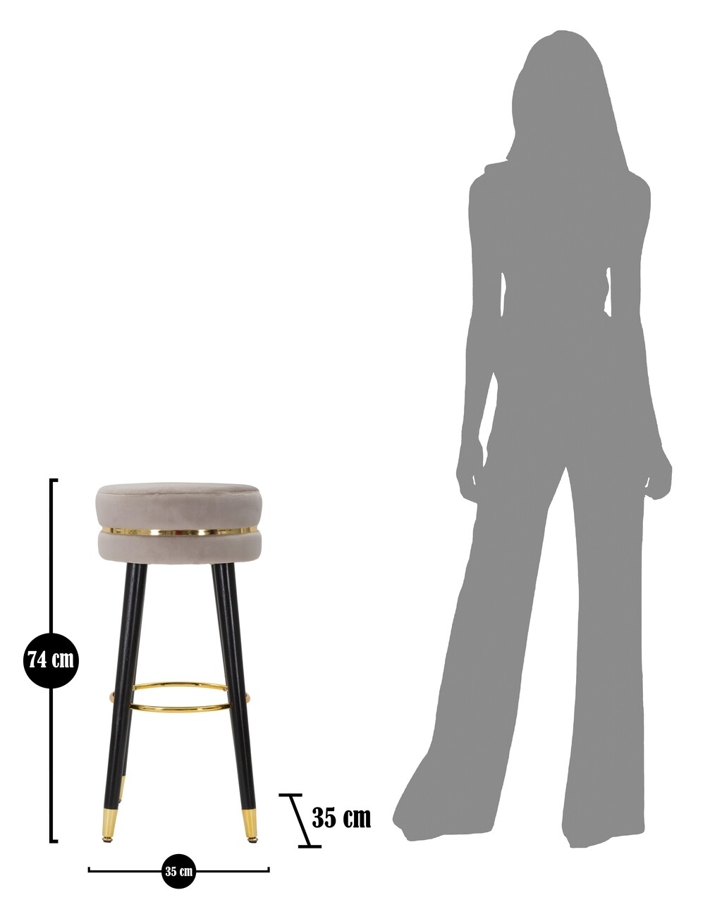 Scaun de bar Paris, Mauro Ferretti, Ø35x74 cm, lemn de pin/catifea, gri/auriu