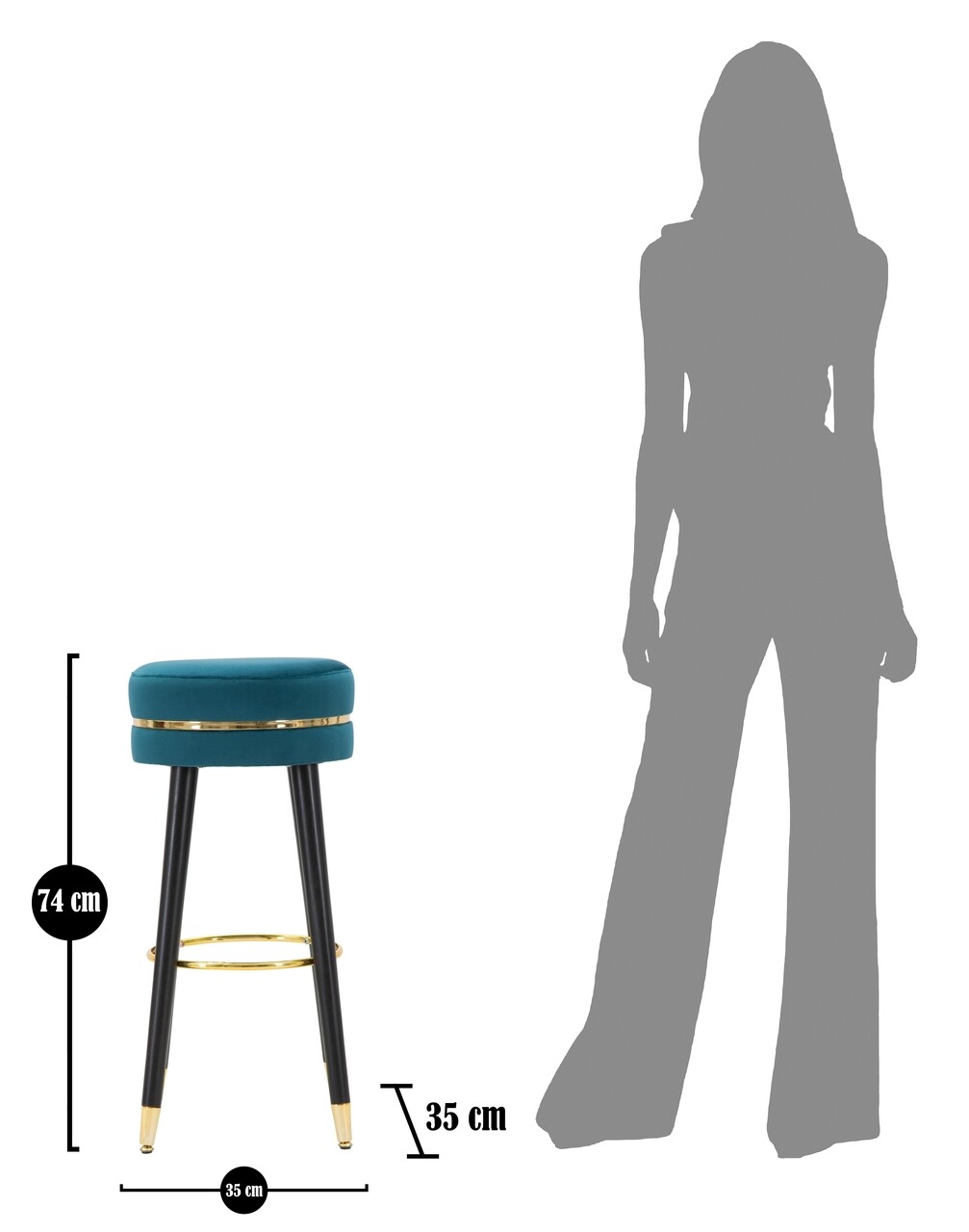 Scaun de bar Paris Teal, Mauro Ferretti, Ø 35x74 cm, lemn de pin/catifea, turcoaz