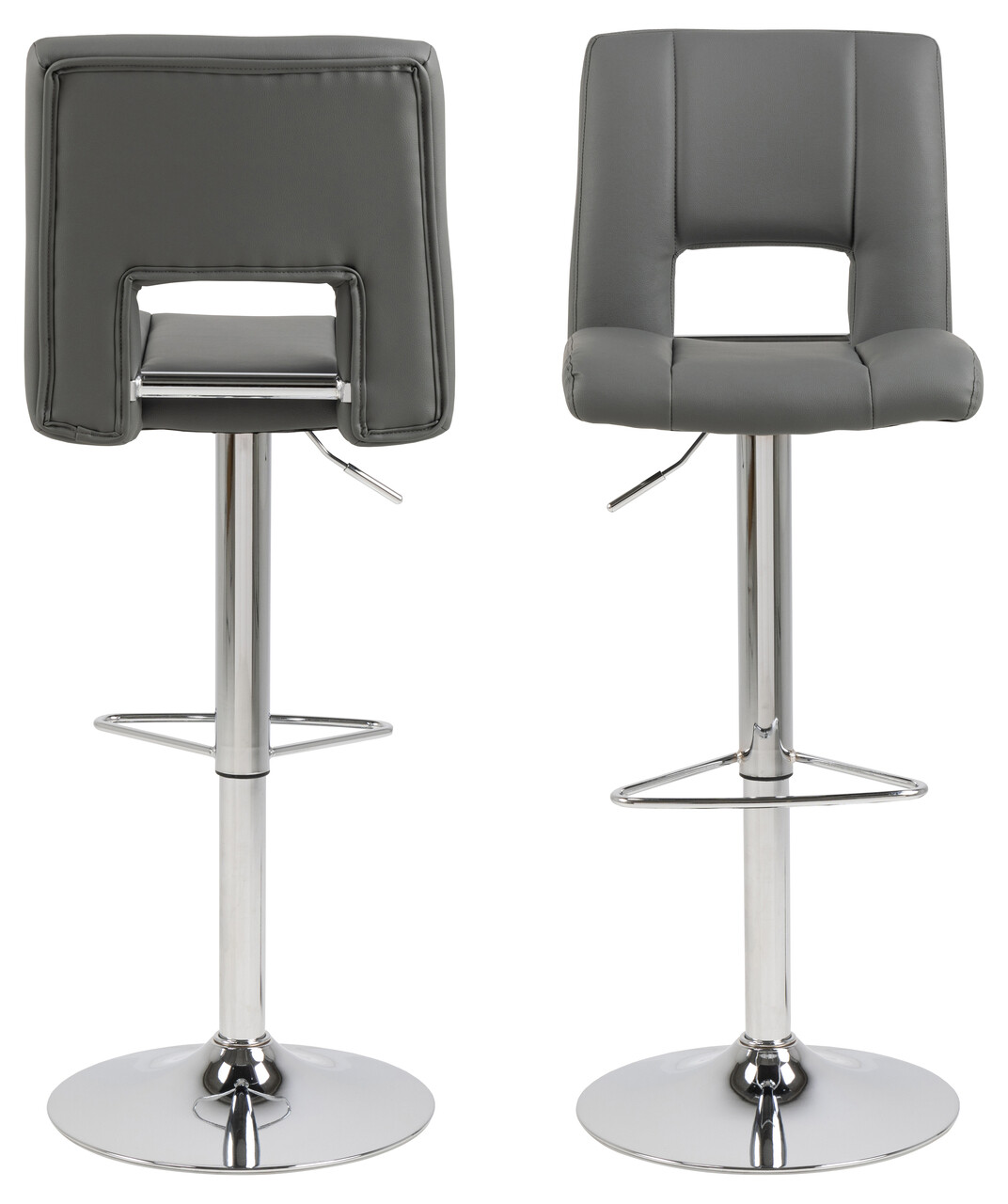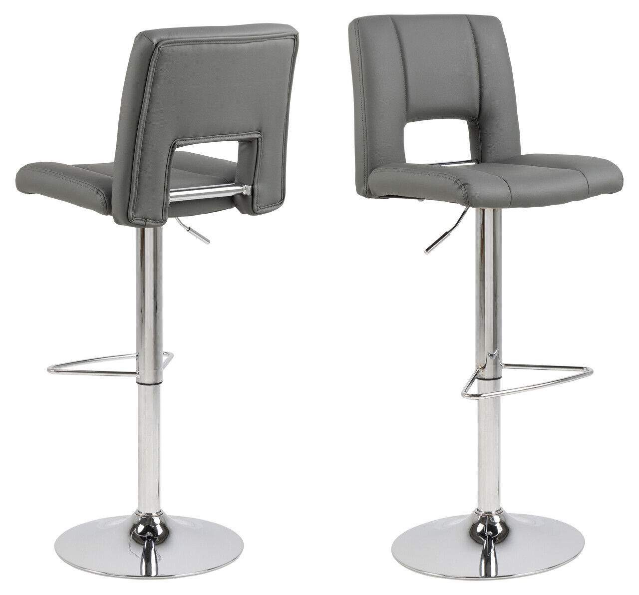 Scaun de bar Sylvia, Actona, 41.5x52x115 cm, rotativ, piele ecologica/otel, gri