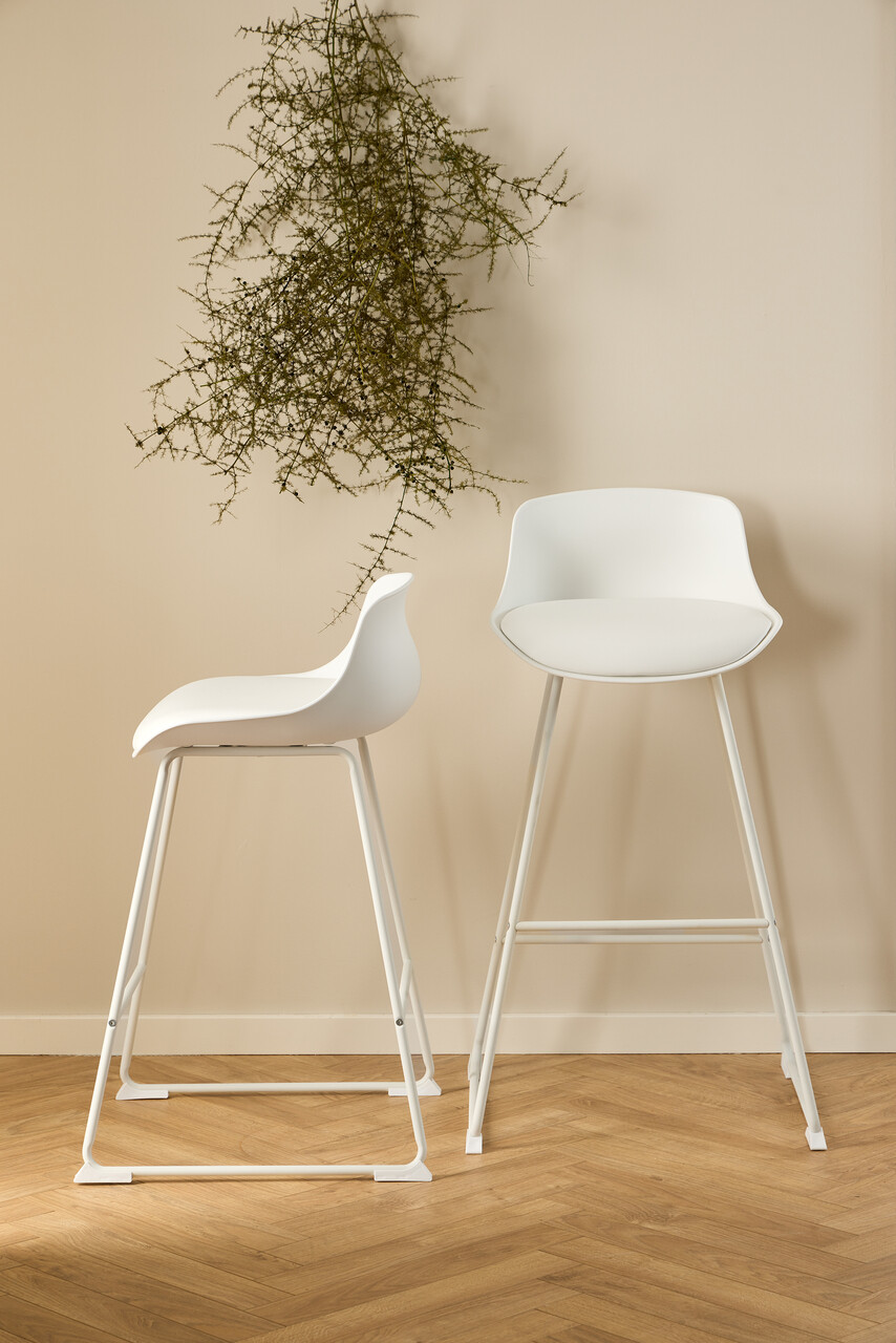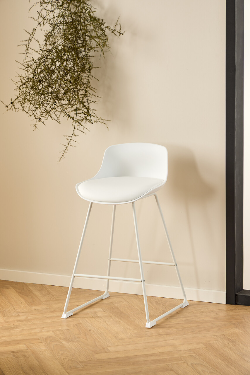 Scaun de bar Tina, Actona, 50x49x84 cm, piele ecologica/otel, alb