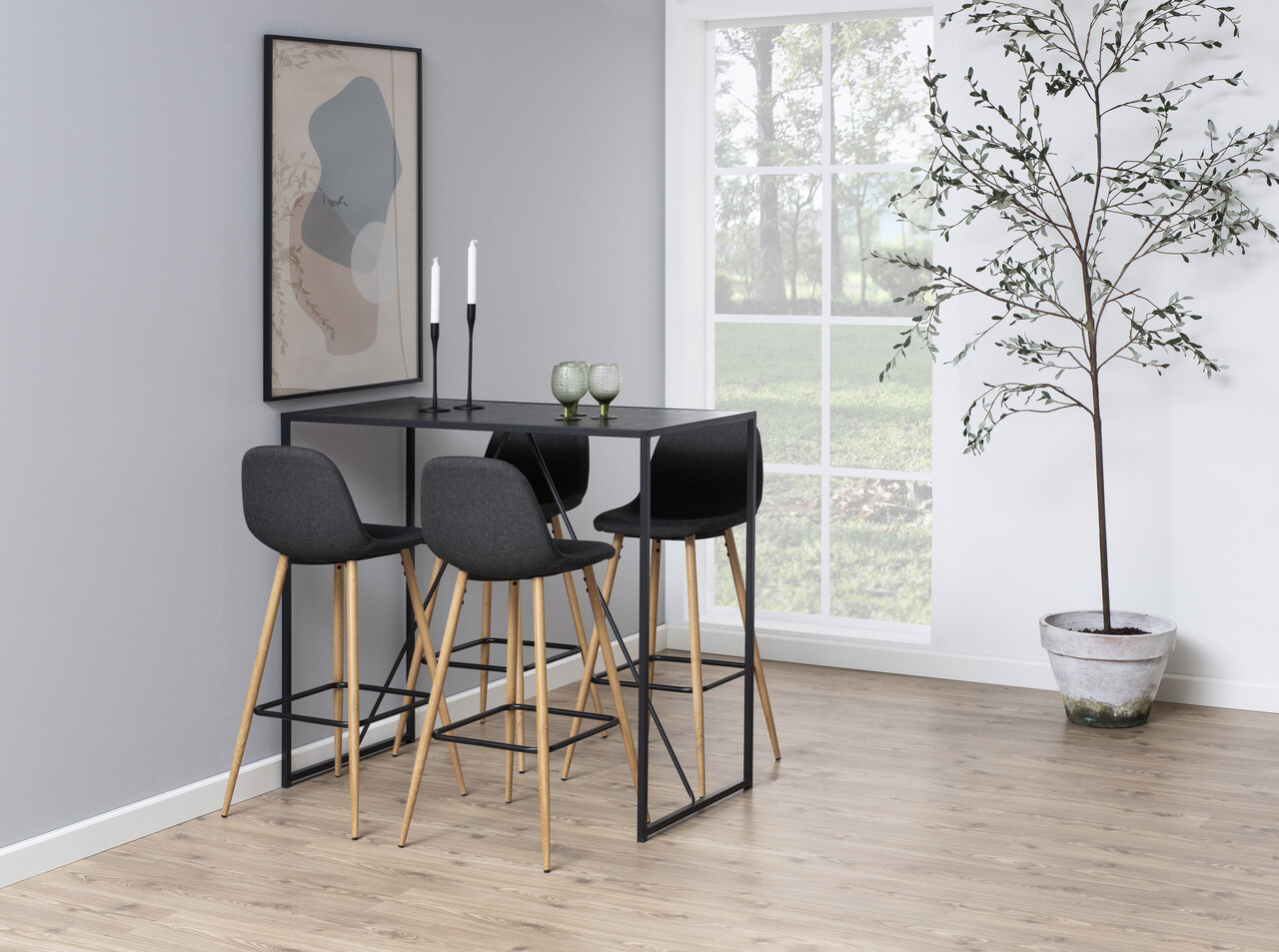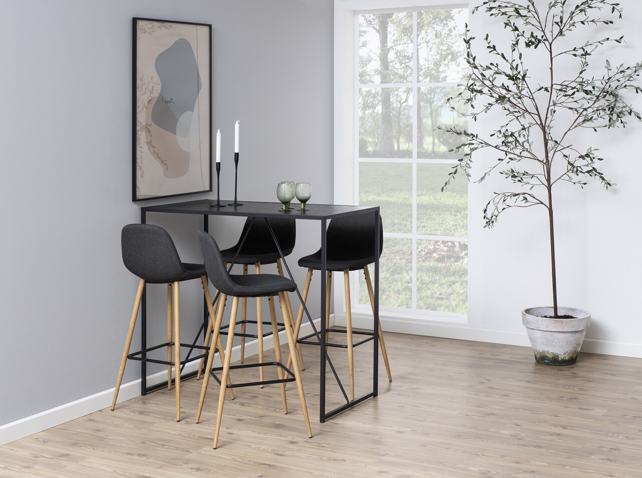 Scaun de bar Wilma, Actona, 46.6x51x101 cm, poliester/otel, gri/natural